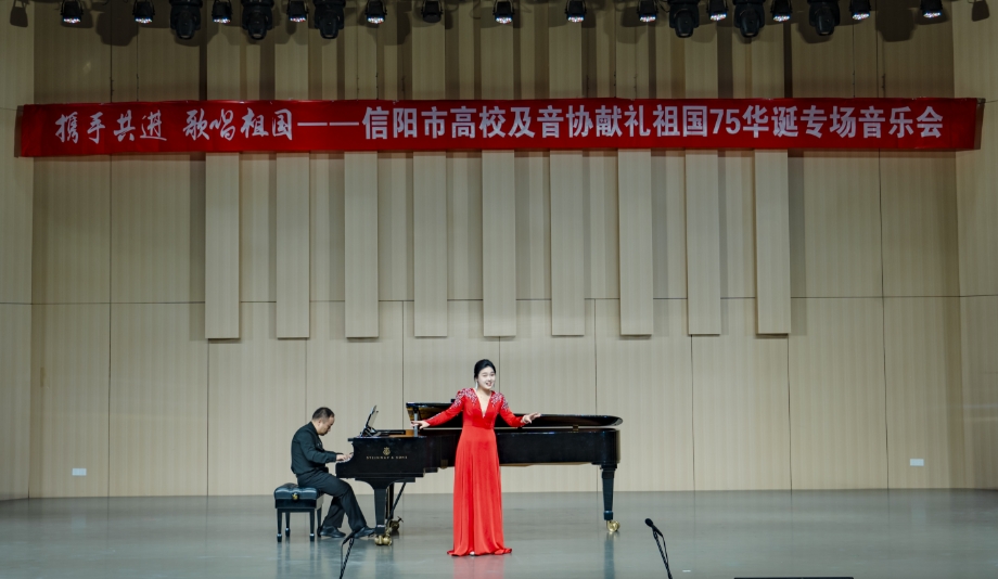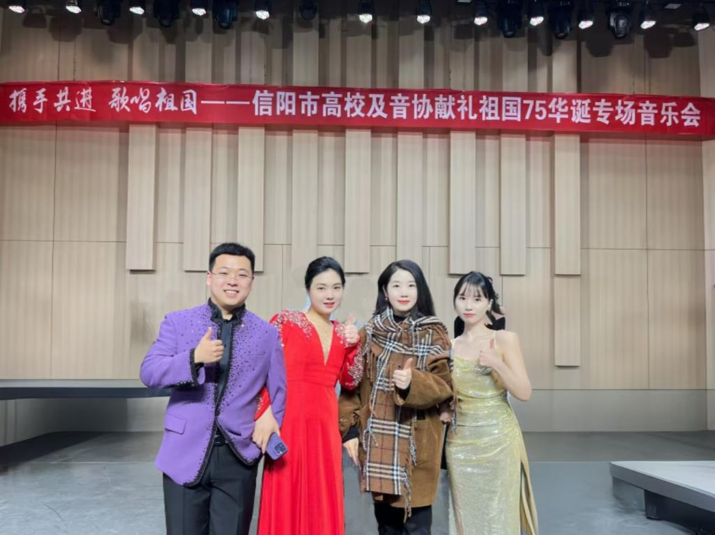 近日,由共青团信阳市委指导,由信阳市音乐家协会、信阳学院音乐学院及信阳市其他几所兄弟院校有关学院共同承办的“携手共进 歌唱祖国”信阳市高校及音协献礼祖国75华诞专场音乐会,在信阳师范大学音乐厅举行。音乐学院副院长、信阳市音乐家协会副主席杨辉带队参加此次活动。