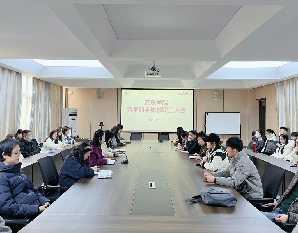 2月16日,音乐学院在艺术楼215会议室召开了全体教职工大会,安排部署新学期工作。副院长杨辉出席并主持会议。