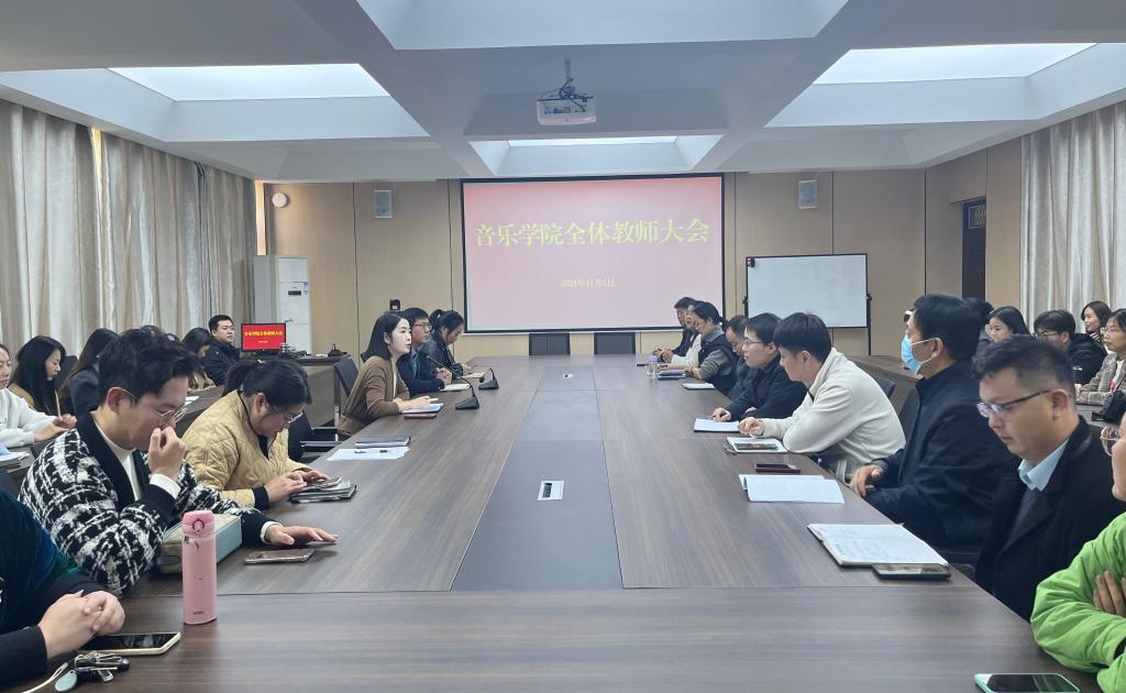 11月7日,音乐学院在215会议室召开全体教师大会,安排部署近期重点工作。党总支书记郝昊、副院长杨辉等班子成员和全体教师参加了会议。杨辉主持了会议。