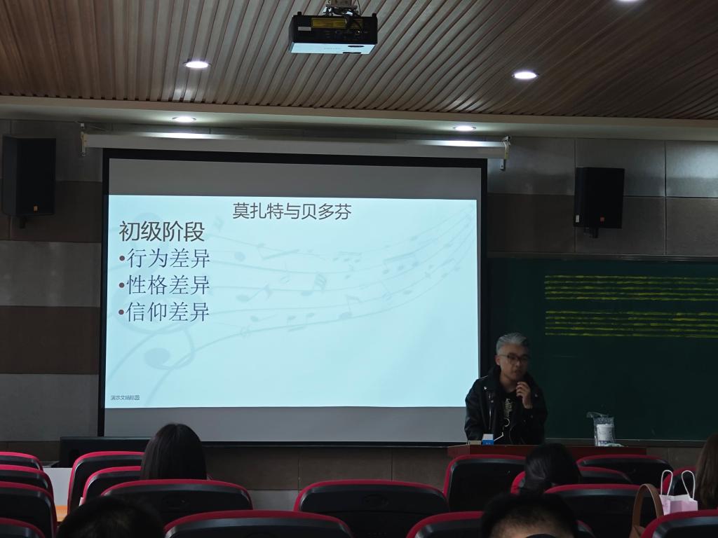 第一阶段教学公开课由钢琴与器乐教研室教师张中卿讲授课程《钢琴》。张中卿融合社会学、美术学、历史学和心理学等多学科知识,通过对莫扎特和贝多芬音乐作品在行为、性格以及信仰三方面进行比较分析,深入浅出地引导学生对音乐的抽象性、音乐的受众群体和音乐的张力三个问题进行思考,授课通俗易懂,气氛活跃。