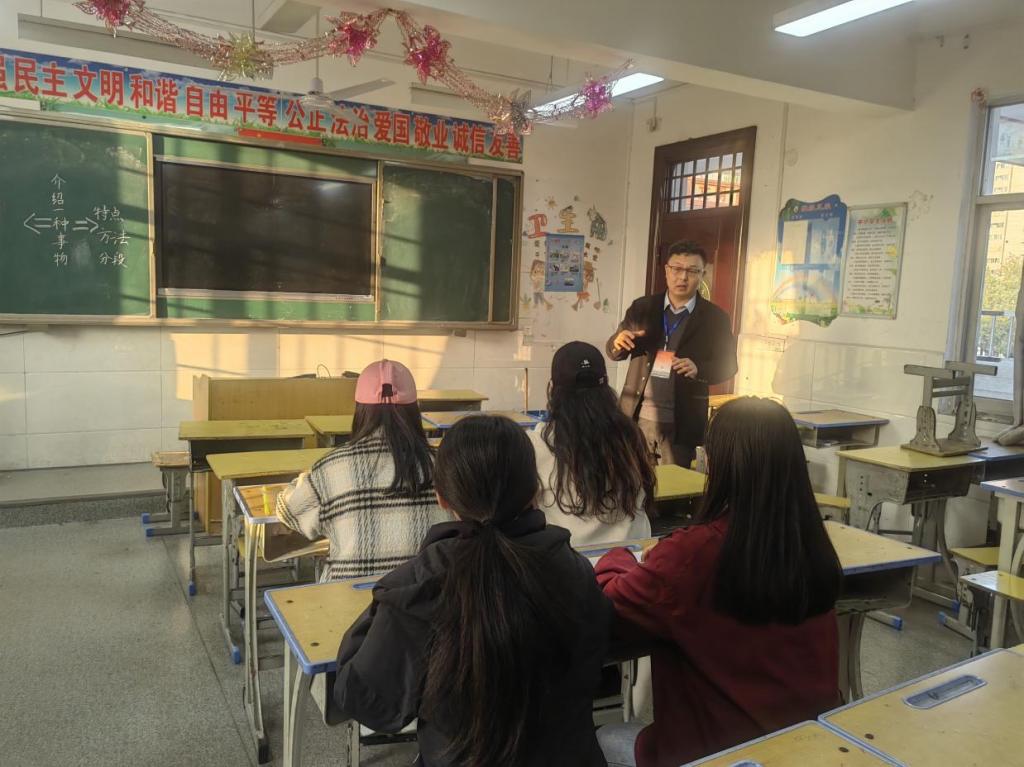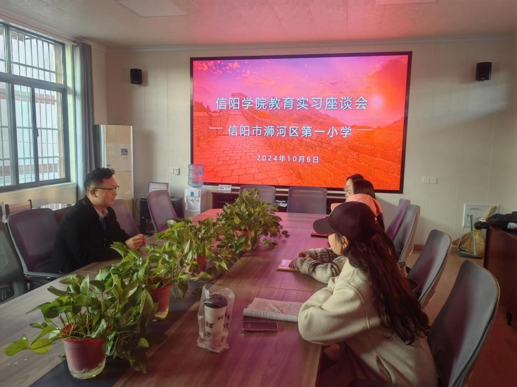 在浉河区第一小学,董康坦深入实习学生备课、办公地点,了解了实习生日常工作的情况,询问了解他们在实习中遇到的问题,并在会议室召开了座谈会。董康坦围绕同学们的实习实际情况和遇到的问题,从听课、备课、讲课三个环节展开详细的讲解和指导。强调一是要多听课,学习老教师宝贵的教学经验;二是要多学习,备课除了要熟悉教材,还要全面了解学情,运用好现代的教学手段和方法;三是要多总结,授课中重要常做教学反思,精进和提升教学技能。