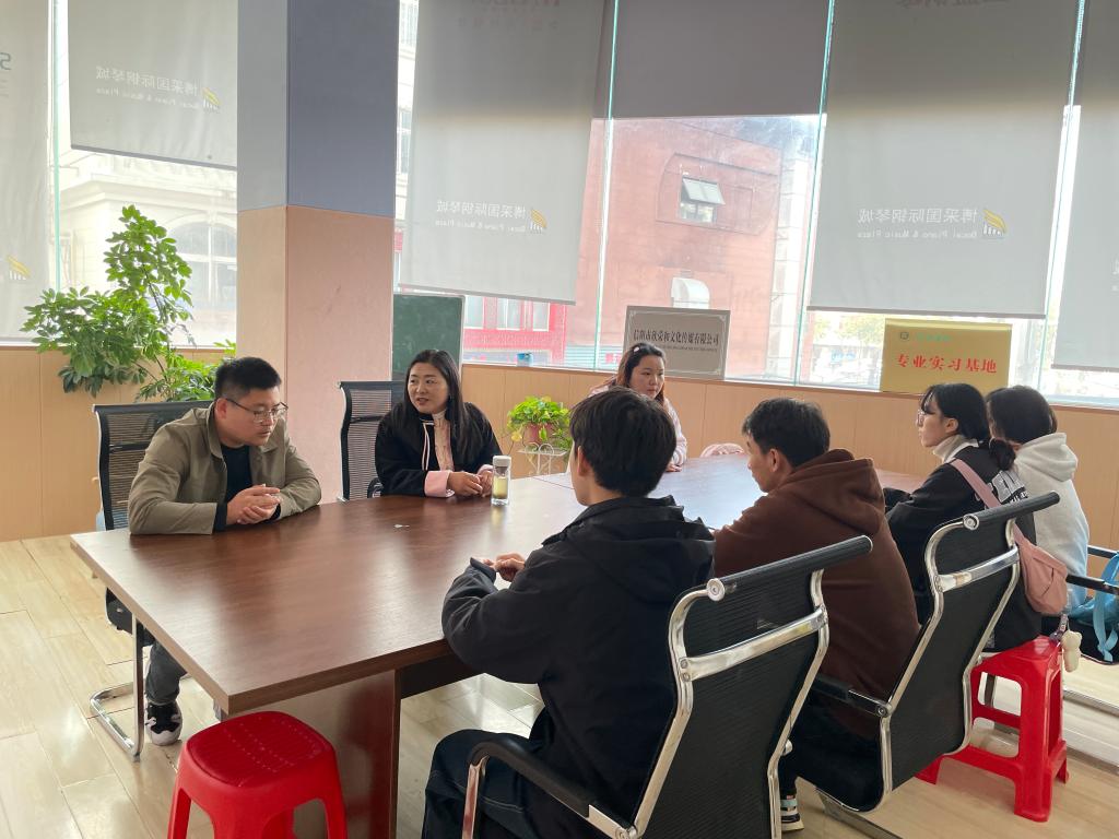在大庆路博彩琴行举行的座谈会上,邓欢欢关切地询问了同学们的实习情况,了解了实习过程中遇到的问题、困惑,并针对这些情况和博彩琴行经理、信阳学院优秀校友涂明星进行了深入的交流与探讨。邓欢欢通过介绍优秀校友涂明星的创业历程,激励同学们一方面要注重培养和锻炼自己吃苦耐劳、爱岗敬业的职业素养,另一方面要学会不断总结思考,提升自己的专业能力和业务水平,为以后真正踏上工作岗位打下坚实基础。