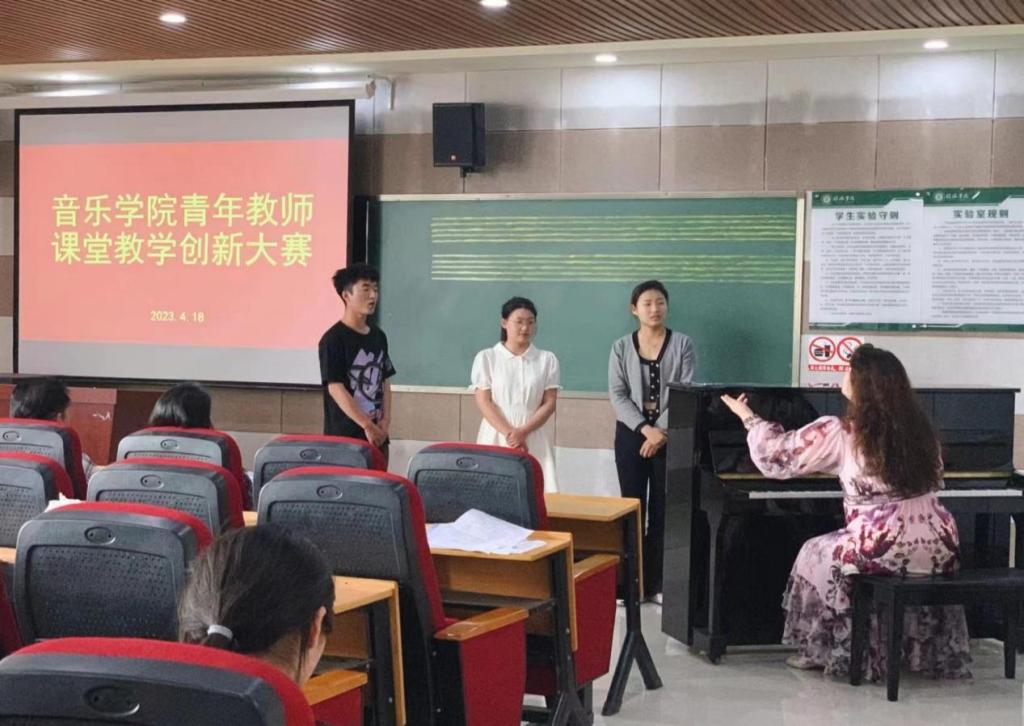 为进一步深化课堂教学改革,促进教学交流,全面提升我院教师的教学能力,4月18日下午,音乐学院在艺术楼205教室举办“音乐学院青年教师课堂教学创新大赛”。音乐学院院长王凯歌、教学副院长杨辉、特聘教授付玉兰、王在畅、张密担任评委。