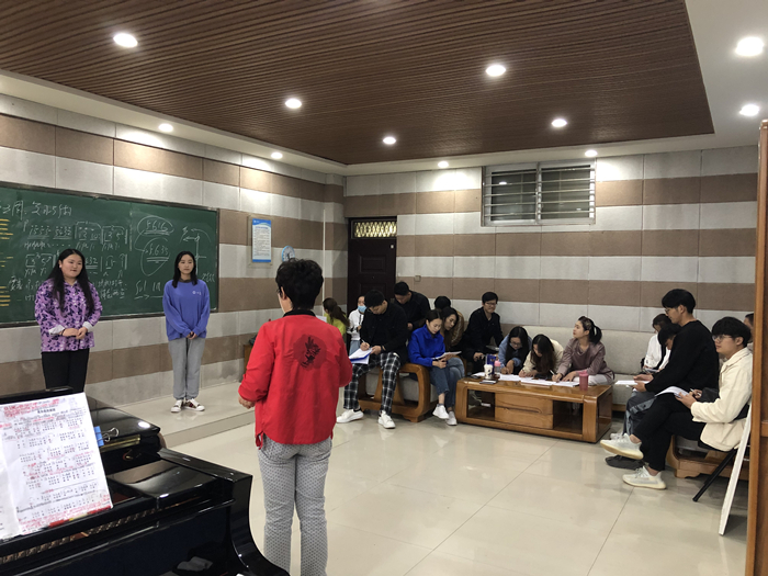 付玉兰教授首先带领学生进行呼吸的基本练习,之后让学生回课,演唱《梨花颂》、《龙船调》,并纠正学生的咬字,发声位置,言传身教。通过观摩学习,可以感受到付教授遵守教师职业道德规范,为人师表,爱岗敬业,并在课堂中自然地融入课程思政,对课程有充分且精心的课程设计,将复杂的知识点和技巧通过自己的经验和理解变成一种通俗易懂的方式传授给学生。