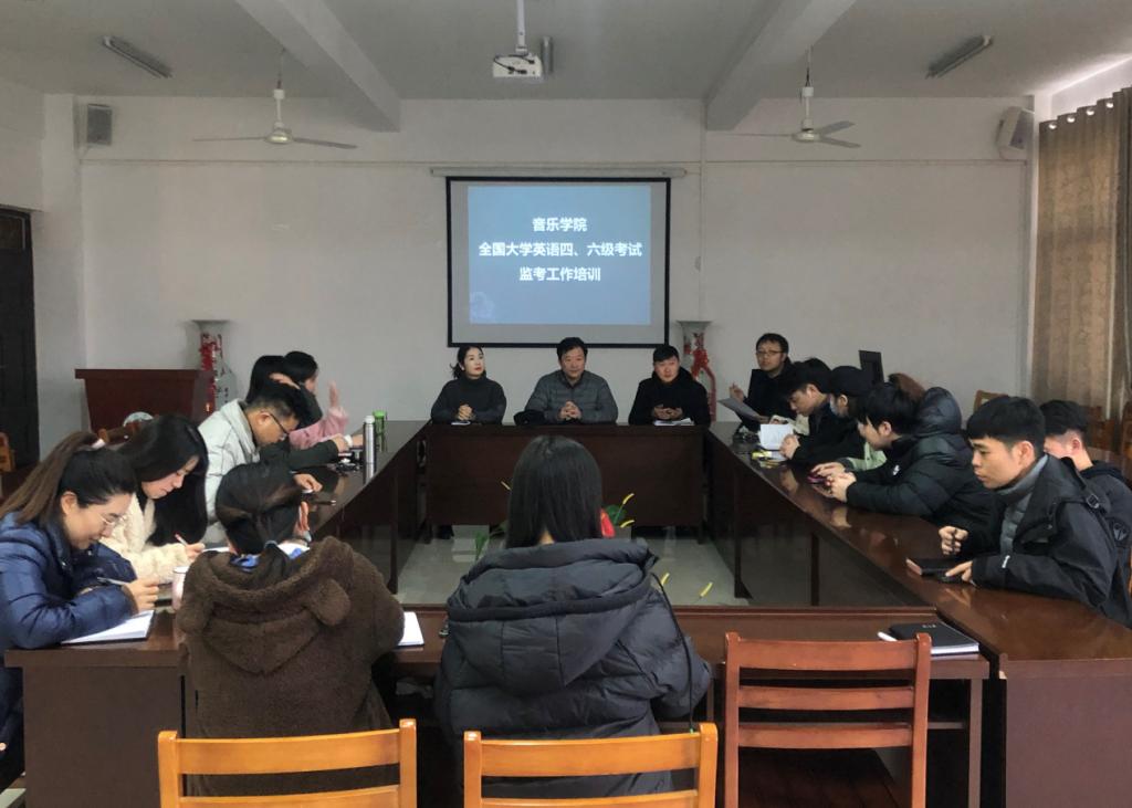 根据学校教务处要求,我院于2020年12月10日15:30,在艺术楼215会议室组织开展了关于大学英语四六级考试监考工作培训会。参会人员有院长王凯歌、党总支副书记陈金强、教学副院长杨辉、教务员唐翊斐、王钰,及音乐学院参与大学英语四六级监考的教师。