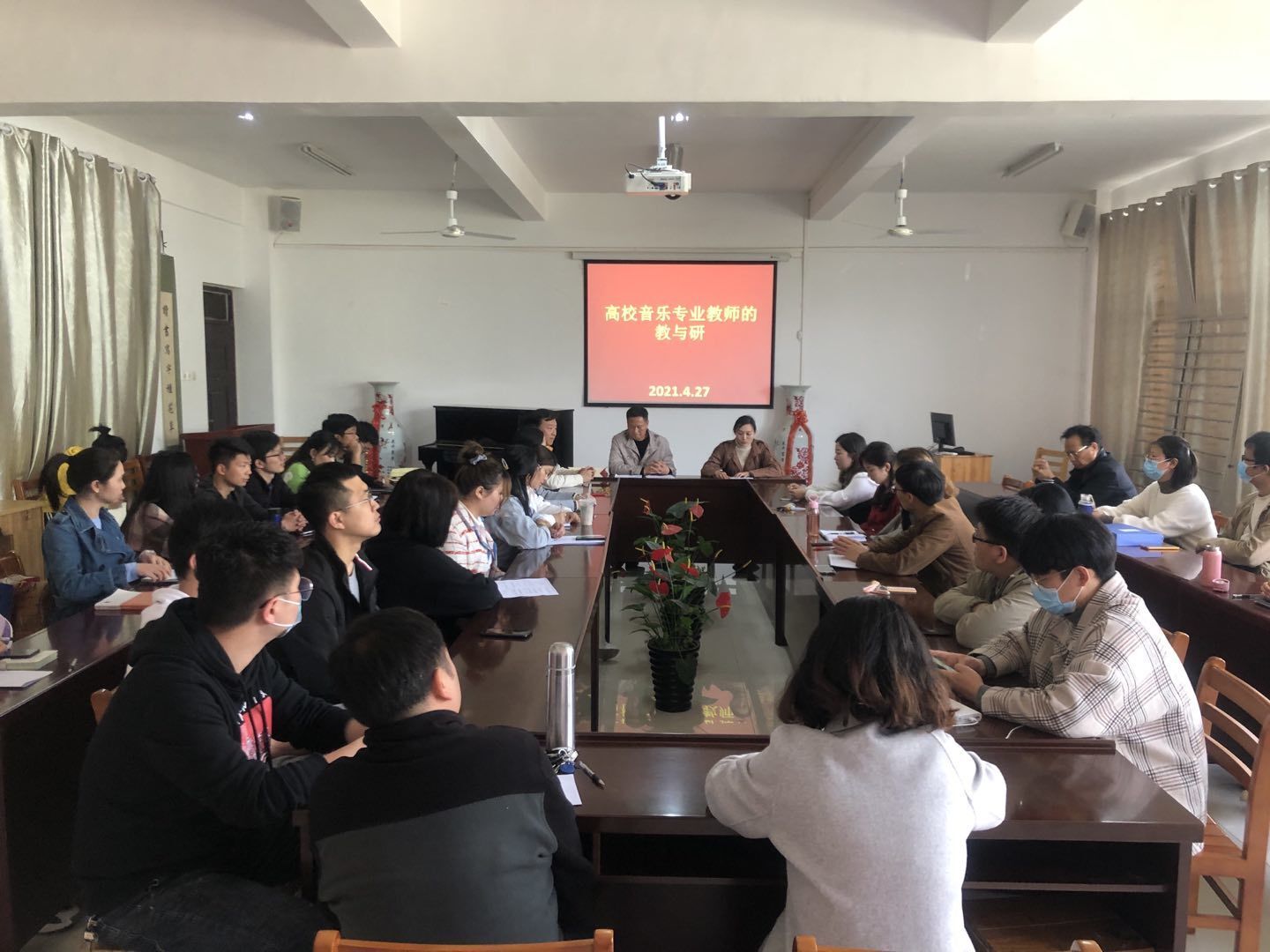 2021年4月27日,应学院邀请,冯建志教授在艺术楼215教室作了《高校音乐专业教师的教与研》的学术讲座。音乐学院全体教师聆听了该讲座。由党总支副书记赵佳主持。