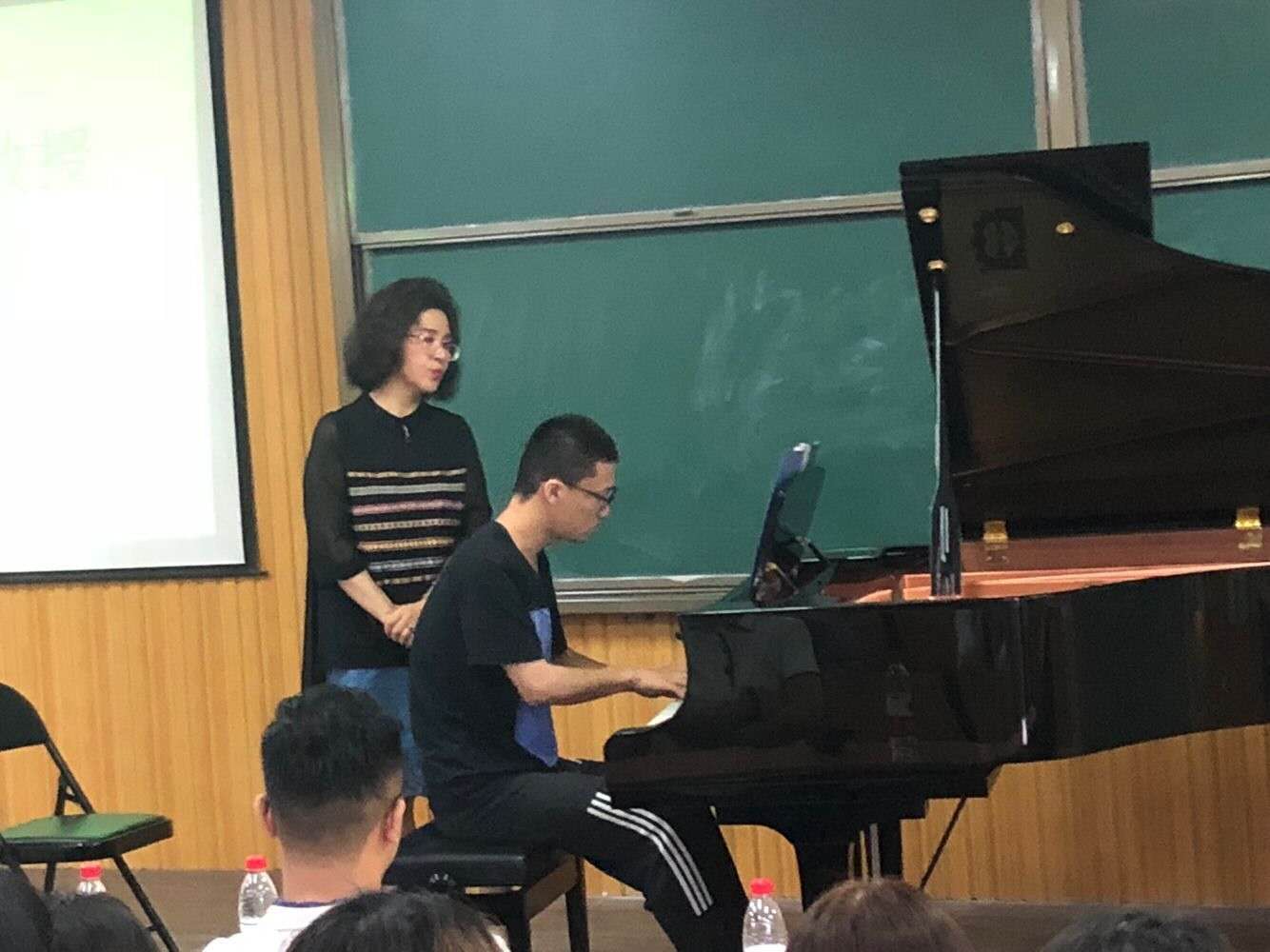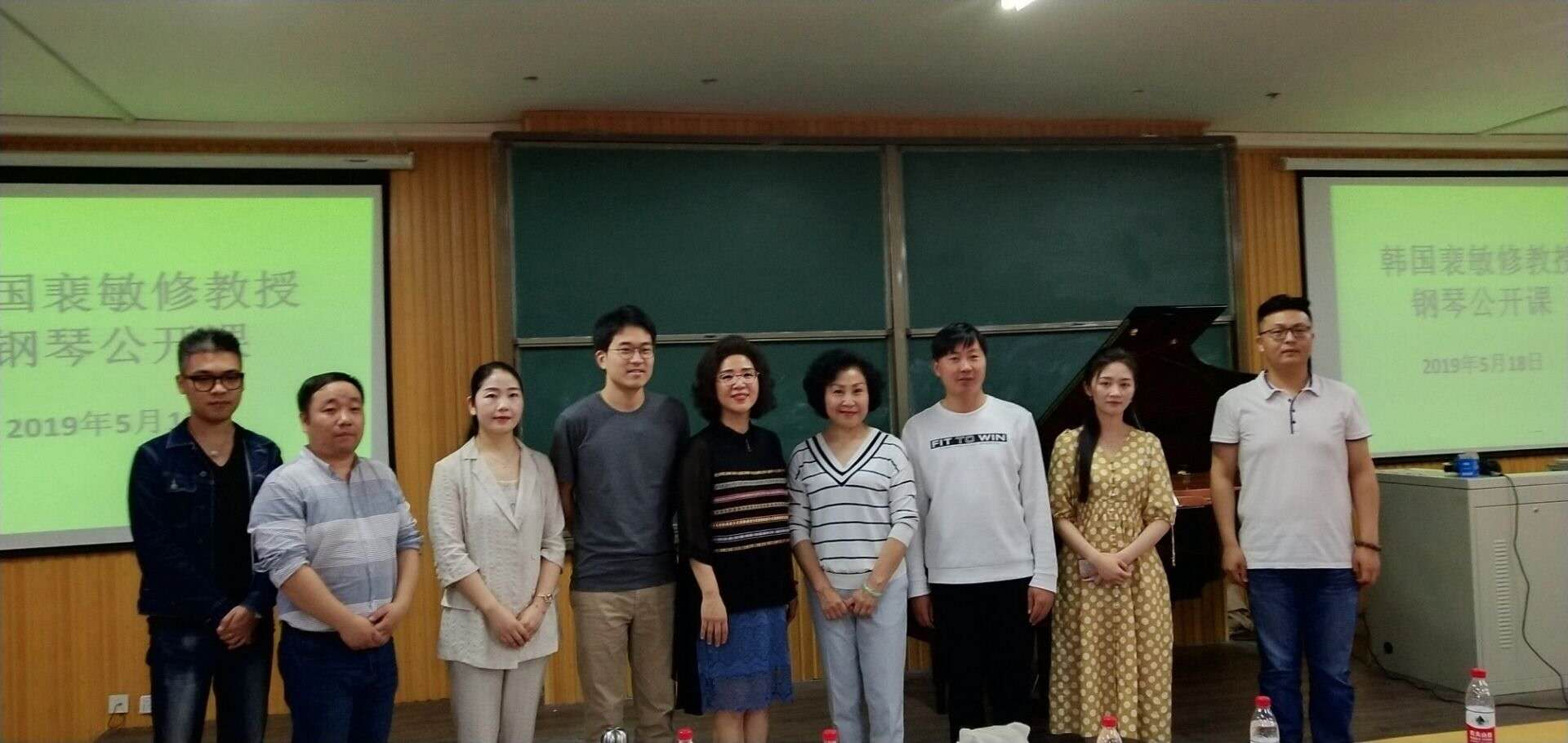 5月18日上午:应音乐学院邀请,裵敏修教授钢琴公开课在艺术楼101教室举行。音乐学院院长吴柏林、党总支副书记陈金强、教学秘书杨辉及200余名师生参加了活动。