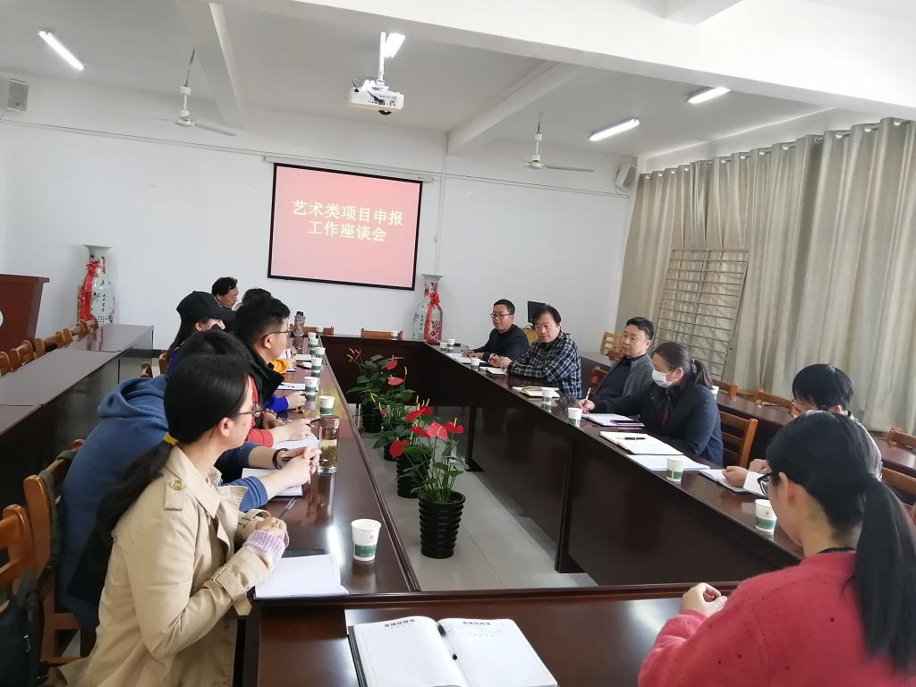 3月25日下午,艺术类项目申报座谈会在艺术楼215会议室召开。副校长王志华在科研处助理高永平、信阳学院民俗文化研究中心办公室主任陈金强的陪同下出席并参加了座谈会。美术学院院长张瑞瑞、音乐学院院长王凯歌及两个学院相关教师参与座谈。