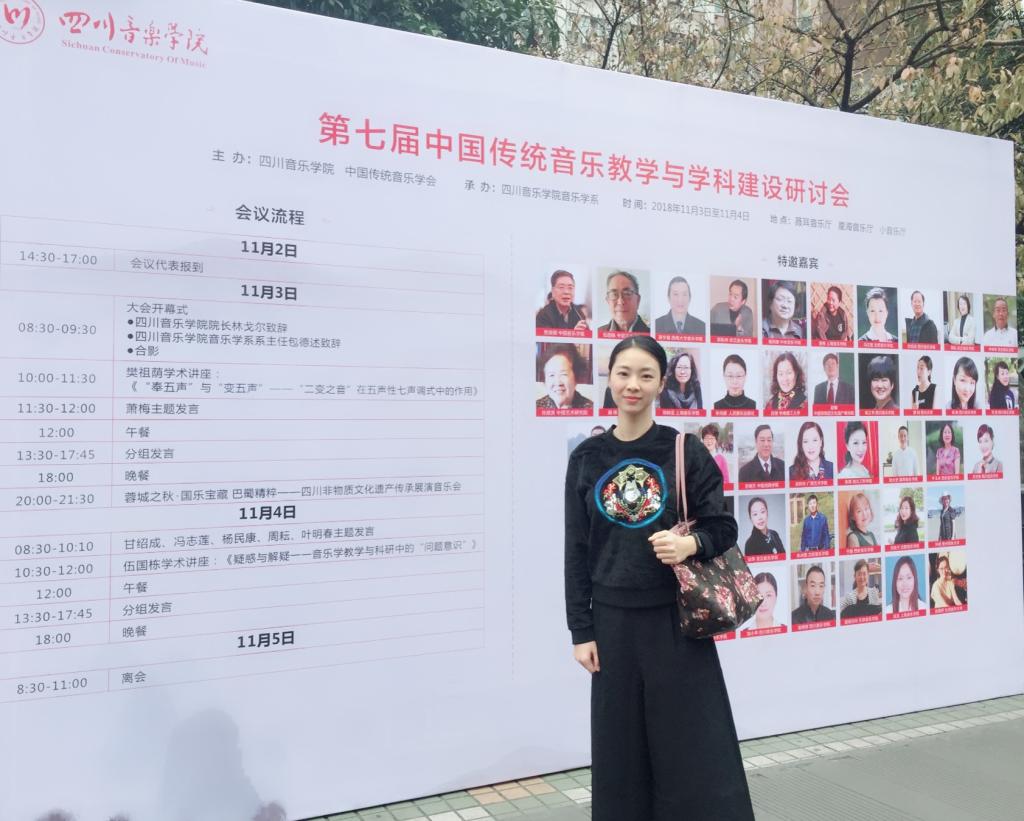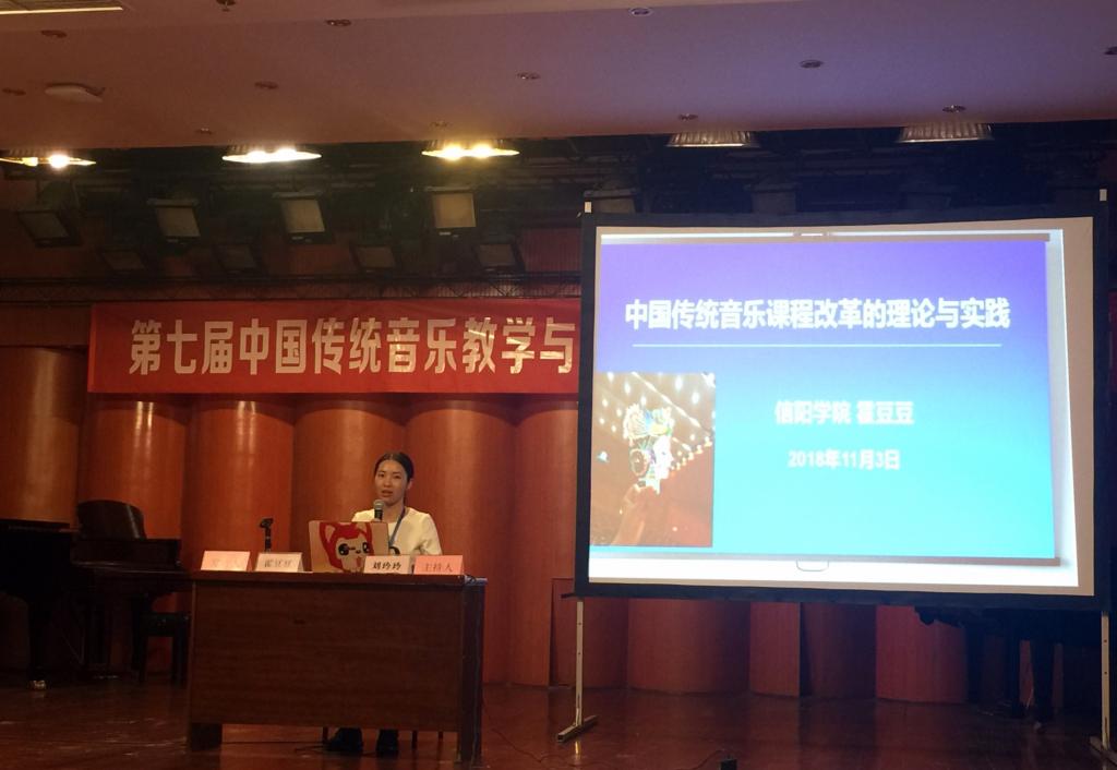 2018年11月3日至4日,“第七届中国传统音乐教学与学科建设研讨会”在四川音乐学院召开,会议由四川音乐学院、中国传统音乐学会主办,四川音乐学院音乐学系承办。音乐学院音乐理论教研室主任、中国传统音乐课程授课教师霍豆豆受邀参会,并做了“中国传统音乐课程改革的理论与实践”的主题发言。
