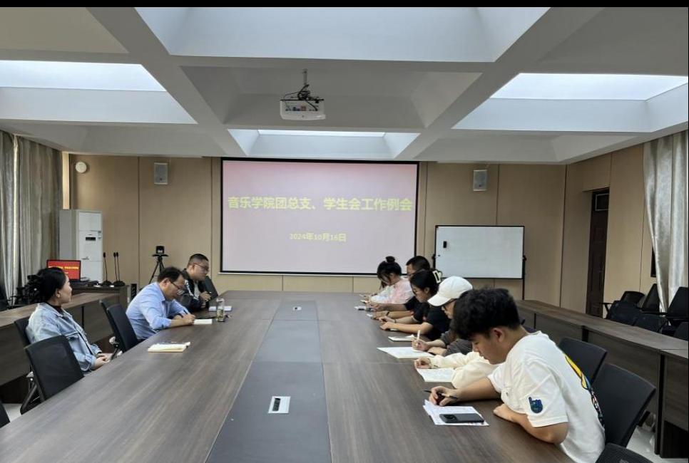 10月16日下午,音乐学院第七届团总支、学生会工作例会在艺术楼215会议室召开。党总支书记郑山峰、学工秘书李平、团总支书记闫贵出席会议。团总支、学生会主席团成员参加了会议。会议由闫贵主持。