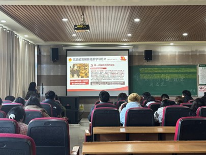 团课伊始,赵雪伊以时间为脉络,系统讲述了自中国共产党成立以来,在新民主主义革命时期、社会主义革命和建设时期、改革开放和社会主义现代化建设新时期以及中国特色社会主义新时代的重要历史事件与发展成就。从嘉兴南湖的红船起航,到南昌起义的枪声划破夜空;从艰苦卓绝的抗日战争,到解放战争的伟大胜利;从新中国成立后的百废待兴,到改革开放后的飞速发展,再到新时代的历史性成就,丰富的史实与生动的讲解让同学们沉浸其中。她向同学们详细的阐述了红色基因在不同历史时期的传承与发展,在新时代背景下对青年一代的发展要求。