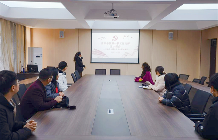 11月30日下午,音乐学院教工第一党支部在艺术楼215会议室举行党的十九届六中全会暨省十一次党代会精神学习会,会议由教工第一党支部书记杨辉主持。