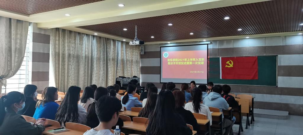 为进一步做好党员发展工作,加强对入党积极分子的教育和培养,音乐学院于4月27日中午在艺术楼202教室举行入党积极分子培训班开班典礼暨第一次党课。音乐学院党支部副书记赵佳、学生支部书记梁晓梅,以及44名入党积极分子共同参加了开班典礼,本次典礼由学生支部书记梁晓梅主持。