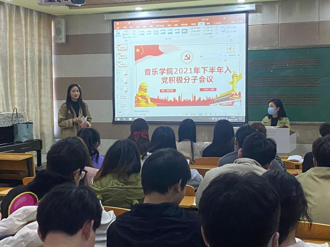 11月24日中午,音乐学院学生党支部在艺术楼202教室举行第十一期入党积极分子培训报告会。学生党支部书记姚垚主持了会议,2021年下半年44名学生积极分子参加了此次会议。