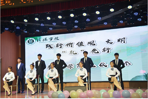 践行价值观,文明‘礼’先行”。为培育和践行社会主义核心价值观,提高学生的文明礼仪修养,营造和谐文明的校园风尚,11月27日晚,学校第六届礼仪风采大赛在大学生活动中心举行。有关单位负责同志周曙光、郑山峰、白杨、秦金峰、王红担任本次比赛评委。各学院团总支书记和500余名学生代表一起观看了比赛。