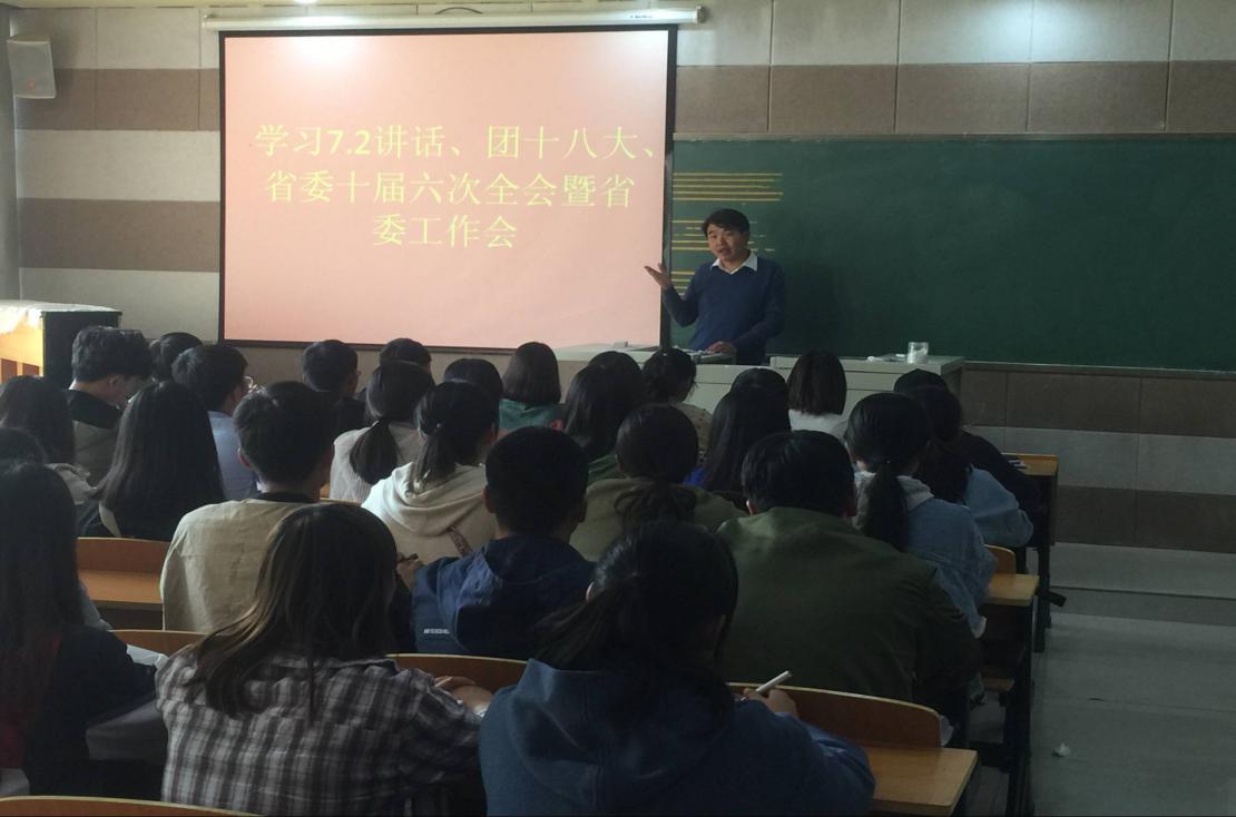 据悉,刘加宽老师传达了习总书记7.2讲话、团十八大和省委十届六次全会的精神,他强调我们要始终坚持党的领导,坚持党管青年原则,把听从党的指挥作为从严治团之魂,具体工作中要认真对照习总书记提出的“好干部标准”和对团干部提出的“坚定理想信念,心系广大青年,提高工作能力,锤炼优良作风”的重要要求,聚焦解决青年的突出问题,切实抓好团干部队伍建设。