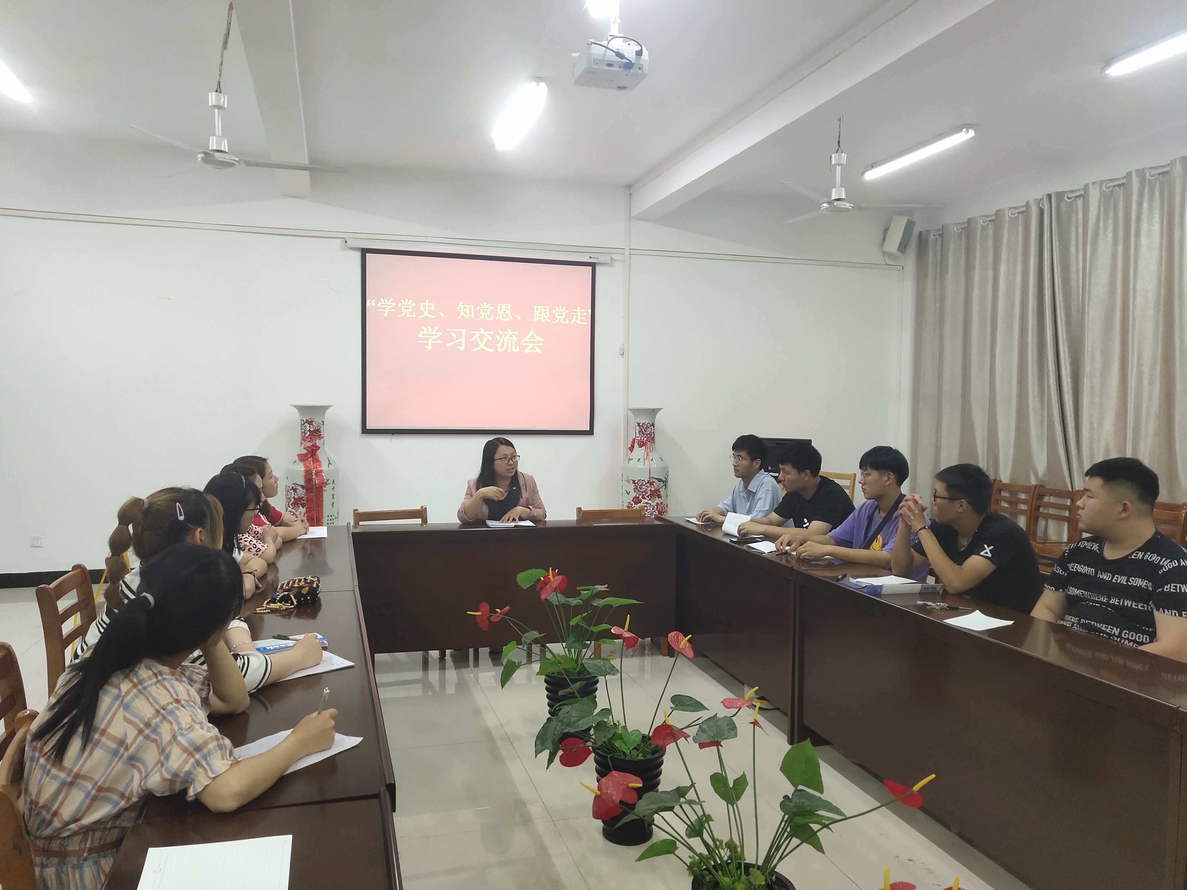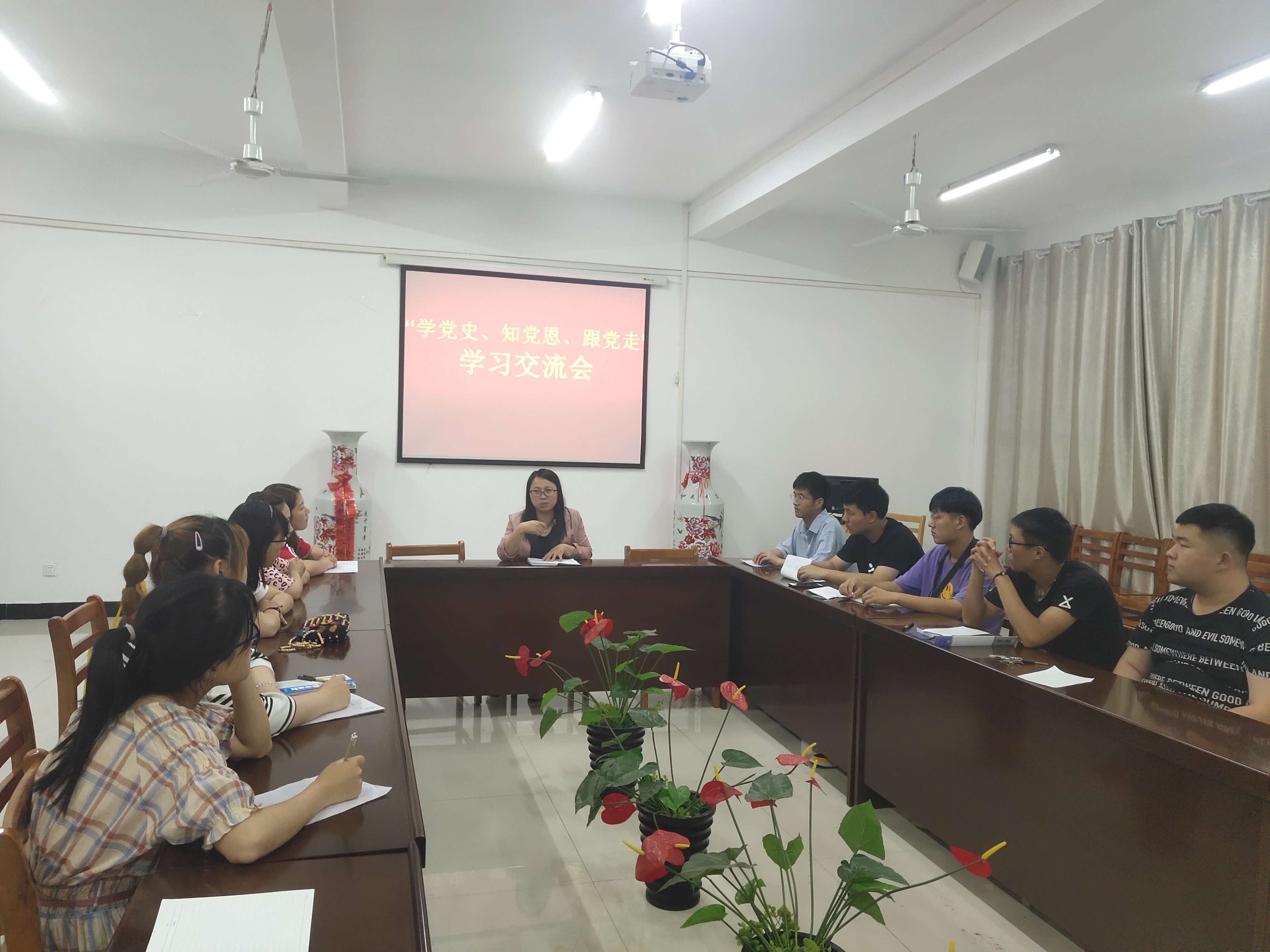 2019年5月22日下午,音乐学院党总支在会议室215召开 “学党史、知党恩、跟党走”学习交流会。参加交流会的有党总支组织员王丽老师、全体2019年上半年入党积极分子。会议由王丽主持。