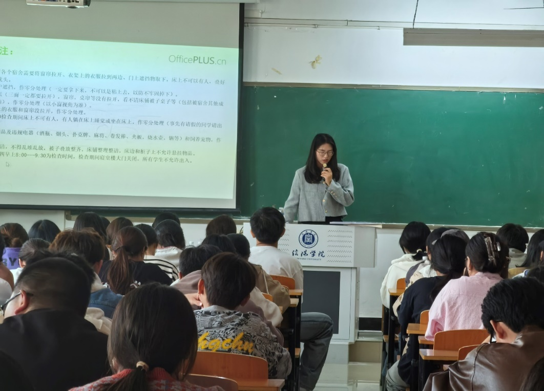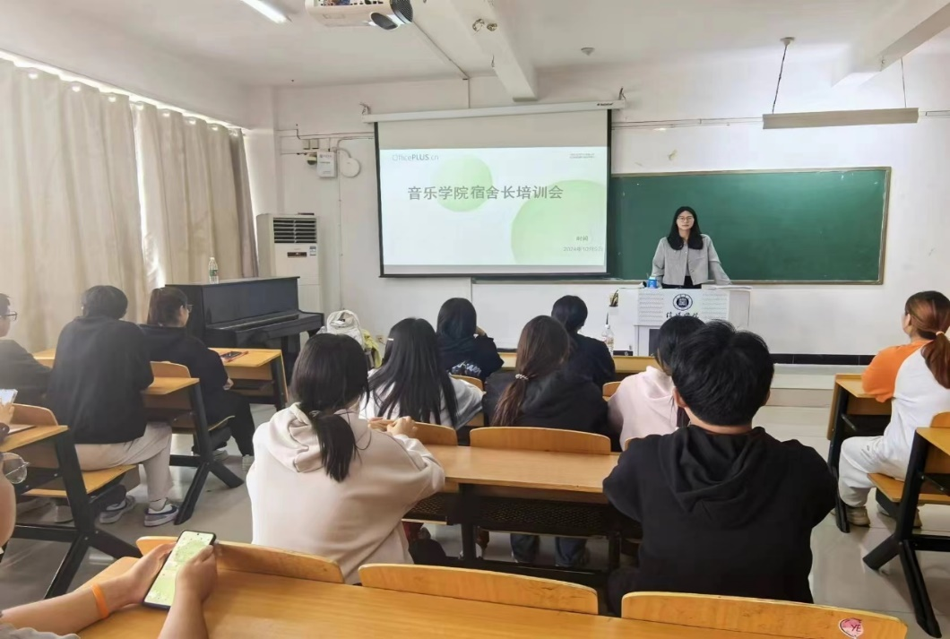 为了强化宿舍在学生良好生活习惯、养成优良学风建设和校园文化培育中的阵地作用,提升寝室长的管理能力,确保宿舍生活的和谐与安全,我院于2024年10月9日在艺术楼407教室成功举办了寝室长培训会。此次活动宗旨通过优良的舍风助推个人成长促进学风、班风、校风的建设。本次培训会由音乐学院公寓管理中心主办,同时邀请了经验丰富的宿舍管理人员主持会议。