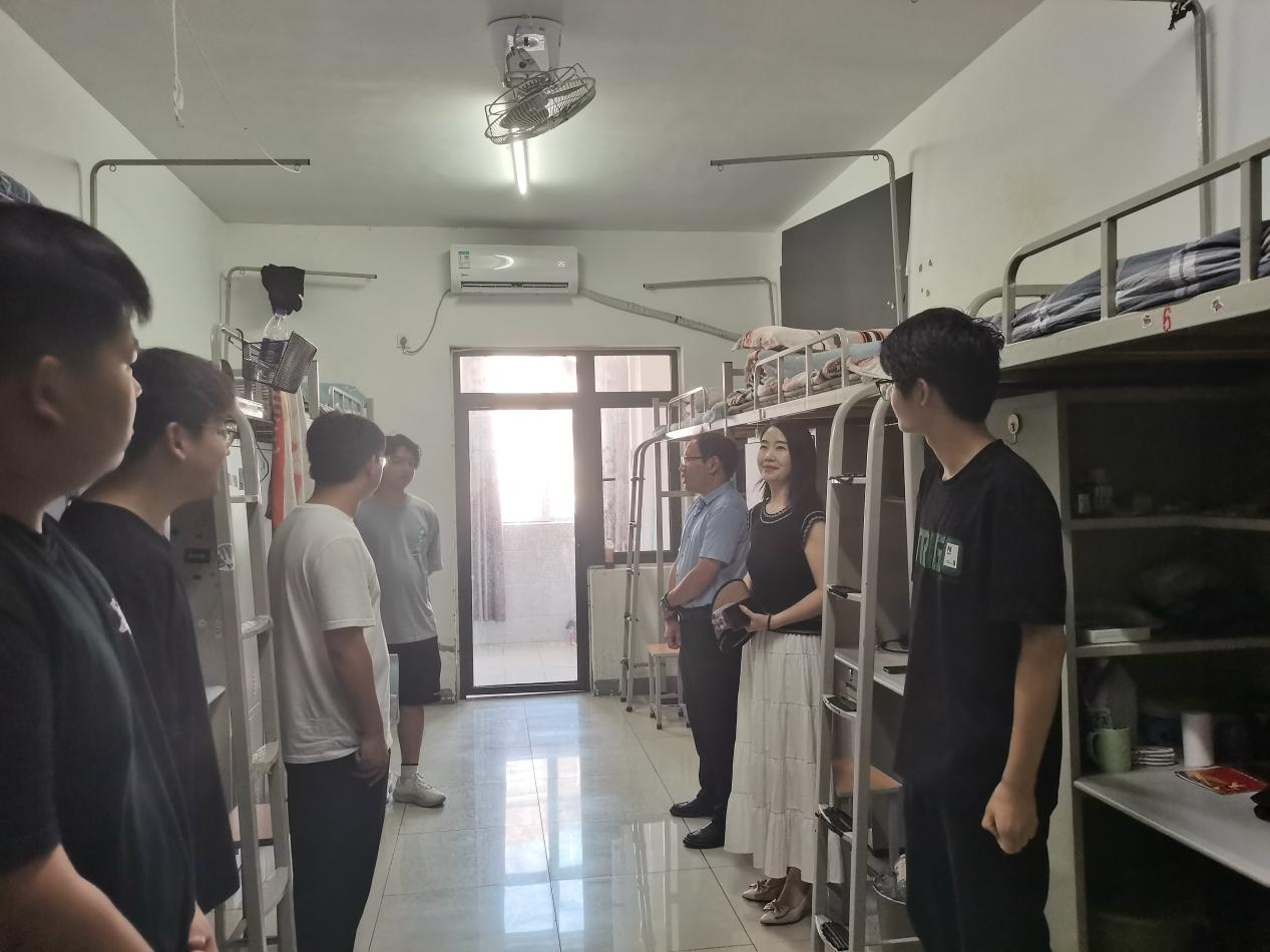 郑山峰、杨辉每到一间宿舍,都详细询问学生来自于哪里,对学校的住宿条件、食堂用餐是否满意,与新生进行亲切的沟通交流。走访过程中,领导老师们希望新生能够尽快适应大学生活,树立远大目标,明确努力方向,端正学习态度,强化安全意识,养成良好的生活习惯,积极参与各项活动,全面提升综合素养,不负家长期望,不负青春韶华,以积极饱满的精神状态书写人生的新篇章。