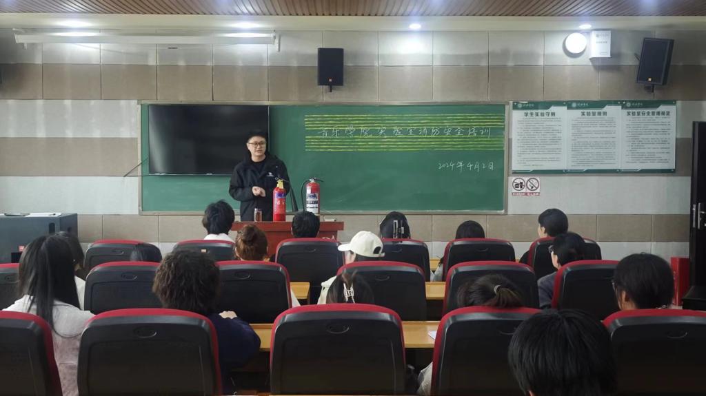 4月2日下午,音乐学院2024年实验室消防安全培训会在艺术楼205召开。学院各年级班委会成员以及学院教学资产部全体成员参加了本次培训。会议由学院实验室中心主任徐沛东主持。