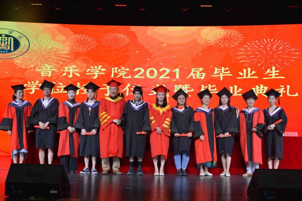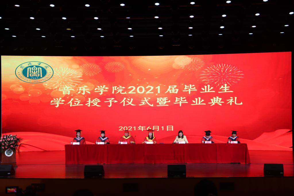6月1日上午,音乐学院在信阳学院音乐厅隆重举行2021届本科生毕业典礼暨学位授予仪式。校长助理高雅、院长王凯歌、教学副院长杨辉、党总支副书记赵佳、部分专家教授、青年教师、辅导员、毕业生及在校生代表参加典礼。典礼由赵佳主持。