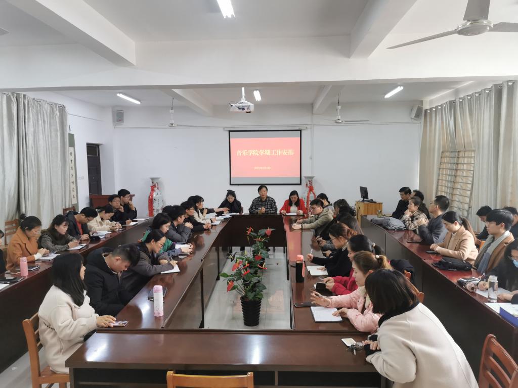 3月16日下午,音乐学院学期工作安排大会在艺术楼215会议室召开。学院院长王凯歌、党总支副书记赵佳、教学副院长杨辉及全体教师参加了会议。会议由赵佳主持。