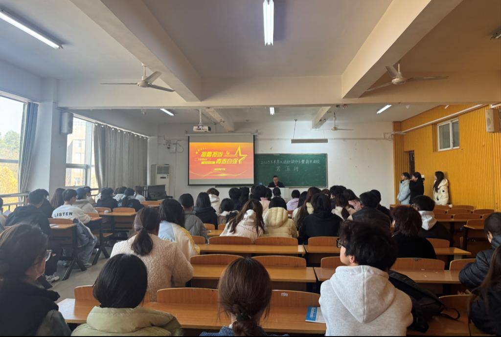 闫贵围绕共青团的职责使命与青年成长发展规律展开深入讲解,以理想信念的时代内涵为切入点,梳理自五四运动中青年热血抗争,到社会主义建设时期团员无私奉献的光辉历史,让同学们直观理解“挺膺担当”的时代内涵,进一步明确新时代青年应有的责任与追求,并聚焦共青团“引领青年、组织青年、服务青年”的核心职责,结合革命先辈坚守理想的奋斗故事、当代音乐专业学子参与乡村美育支教的实践案例,深刻阐释担当精神在专业学习与社会实践中的重要意义,强调青年学子需以“过硬本领”为根基,以“主动担当”为导向,在艺术实践中践行青春使命。