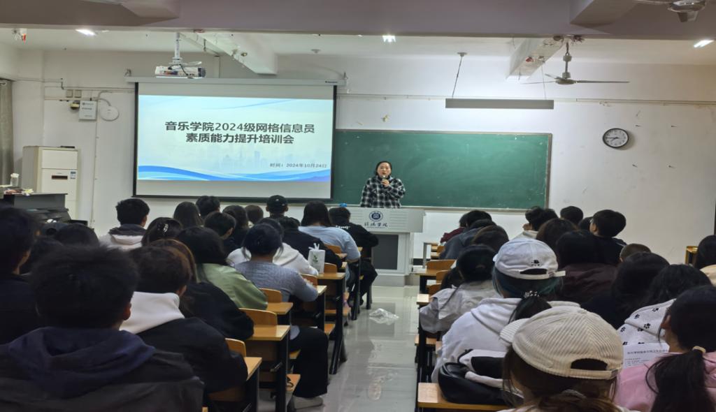 为加强学生干部队伍建设,提高学生干部及网格信息员的综合素质,音乐学院10月24日晚在艺术楼407教室召开2024级新生入学教育之网格信息员素质能力提升培训会议。