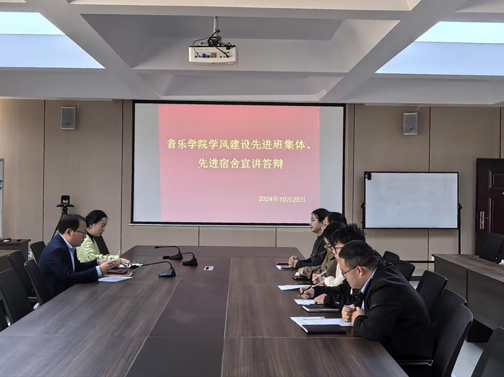 10月25日上午10点,音乐学院学风建设先进班集体、先进宿舍宣讲答辩会在艺术楼215会议室举行。本次答辩会旨在树立榜样,促进学院学风建设,营造积极向上的氛围。答辩评委是音乐学院党总支书记郑山峰、学工秘书李平以及全体辅导员老师。参与评选的班级和宿舍代表通过精彩的PPT展示和生动的演讲,向评委们介绍了各自在学风建设方面的突出表现。