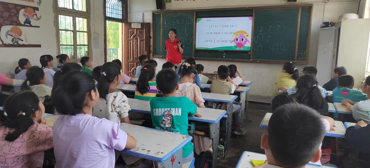 本次支教中,二年级教师带领学生学习了音乐的知识,在教学中老师带领同学们认识乐器,引起了学生们的兴趣;四年级教师带领学生学习了歌曲《外婆的澎湖湾》,从简谱入手,更好的使学生们歌唱;六年级教师带领学生学习歌曲《龙的传人》,在欢乐浓厚的音乐氛围中顺利的结束了这节音乐课。