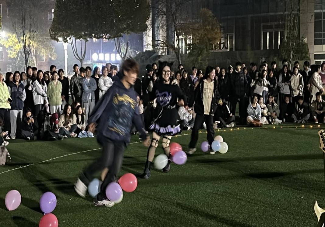 除了音乐表演,现场还设置了互动环节,抢凳子和踩气球两个小游戏使现场的观众们参与感满满,每个参与活动的同学都收到了小礼品。现场欢声笑语不断,大家都热情参与,感受音乐的魅力。最后此次音乐狂欢派对在现场观众的合唱声和欢呼声中圆满结束。