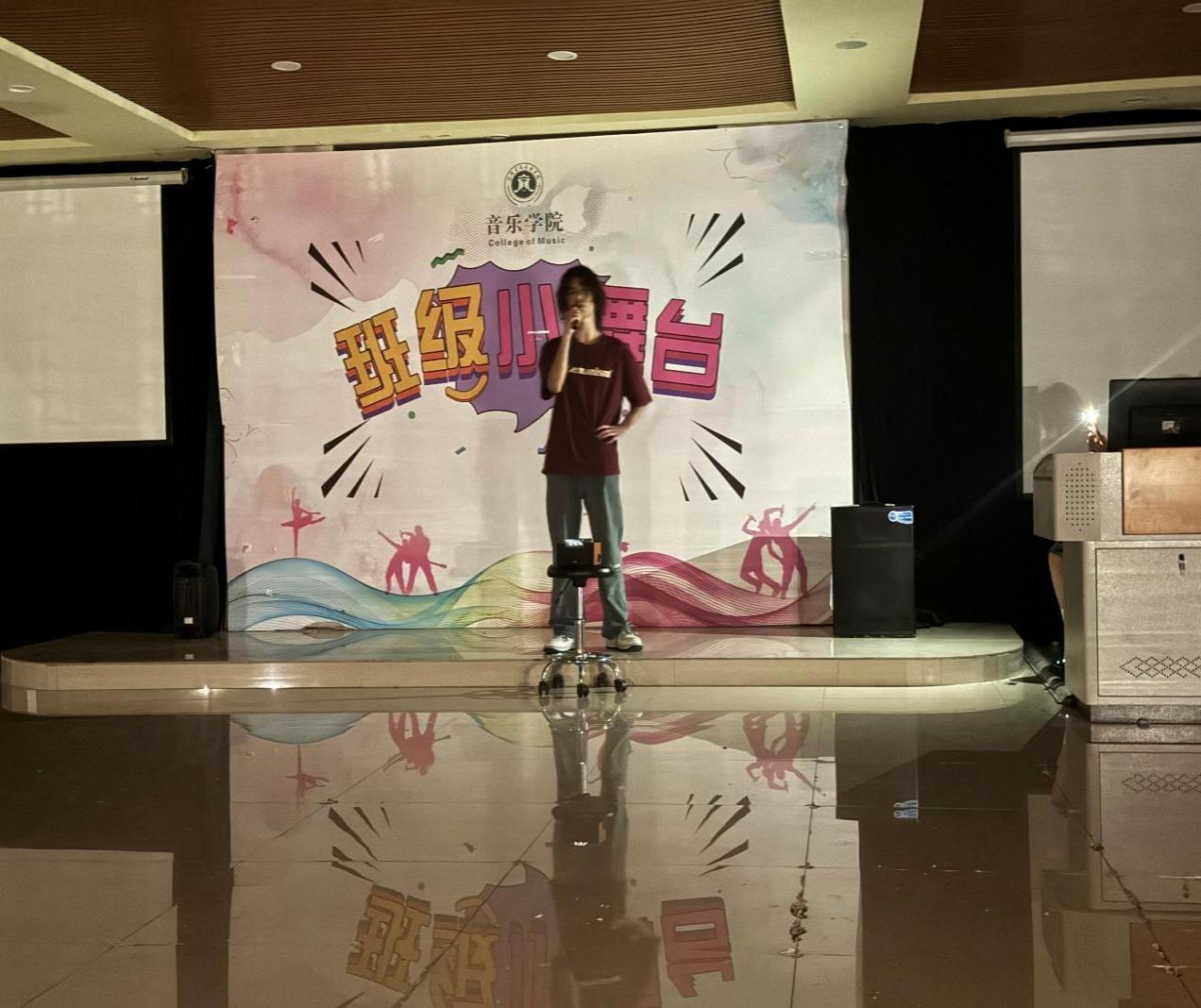 为加强学风建设,营造良好的班级氛围,促进班级成员的交流与互动,增强同学们之间的凝聚力与向心力,强化同学们专业舞台表演实践能力与锻炼心理素质,提高集体荣誉感和归属感。在5月14日晚上,2023级音乐学4班在艺术楼201教室举办了”班级小舞台”活动。音乐学院辅导员全成出席了本次活动。