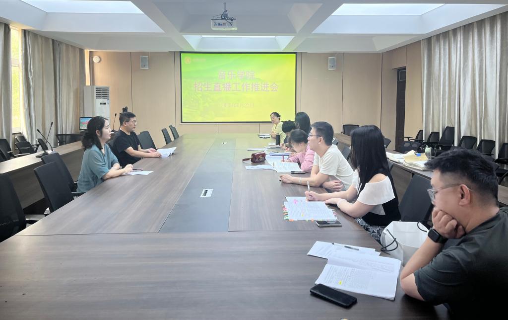 为进一步落实落细学校有关招生宣传及直播工作要求,6月23日,音乐学院在艺术楼215会议室召开招生宣传工作推进会,围绕开展的直播专场展开总结讨论。党总支书记郝昊、副院长杨辉,班子成员以及招生直播工作有关教师参加了会议。郝昊主持了会议。