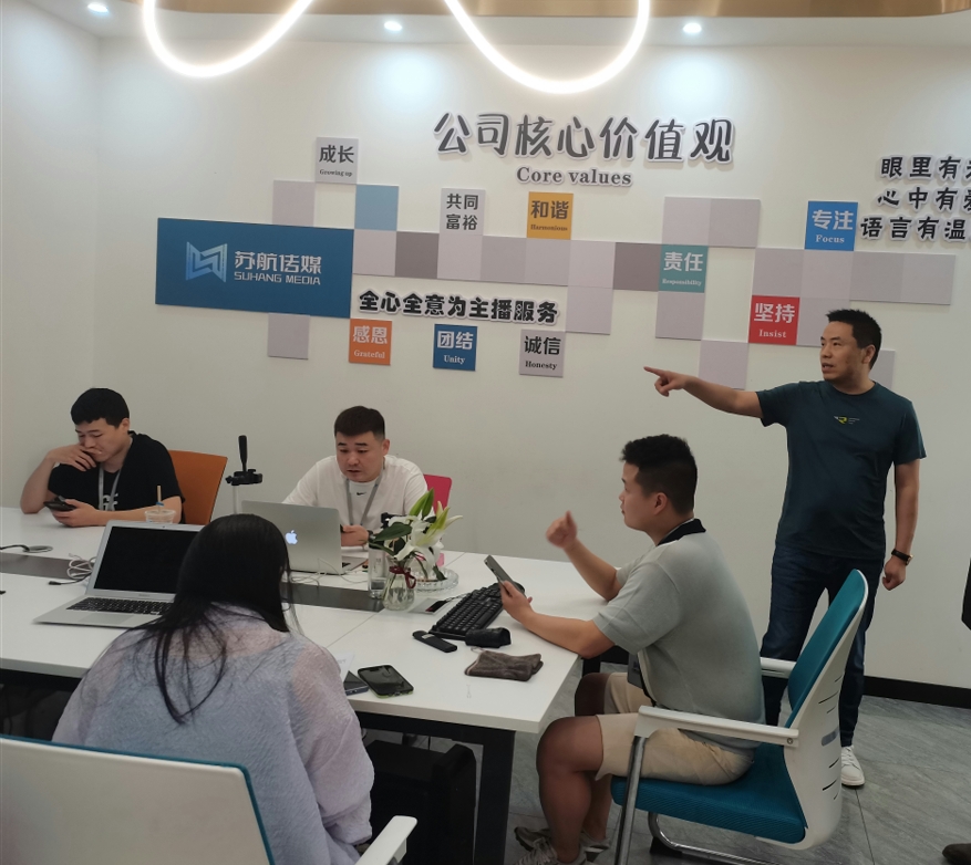 交流会结束后,郑山峰一行通过实地参观、现场观摩等形式,深入了解传媒公司独特的直播电商网红孵化运营模式,并与公司网红孵化中心、策划部、视频制作部、电商直播室等一线达人进行了交流。