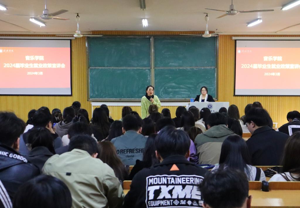 筑梦青春,“职”面未来。为扎实做好2024届毕业生就业工作,帮助毕业生认清就业形势,3月22日下午,音乐学院开展2024届毕业生就业政策宣讲会,学工秘书李平、毕业班辅导员樊丽、姚垚、李艳玲及2024届全体毕业生参加了会议。