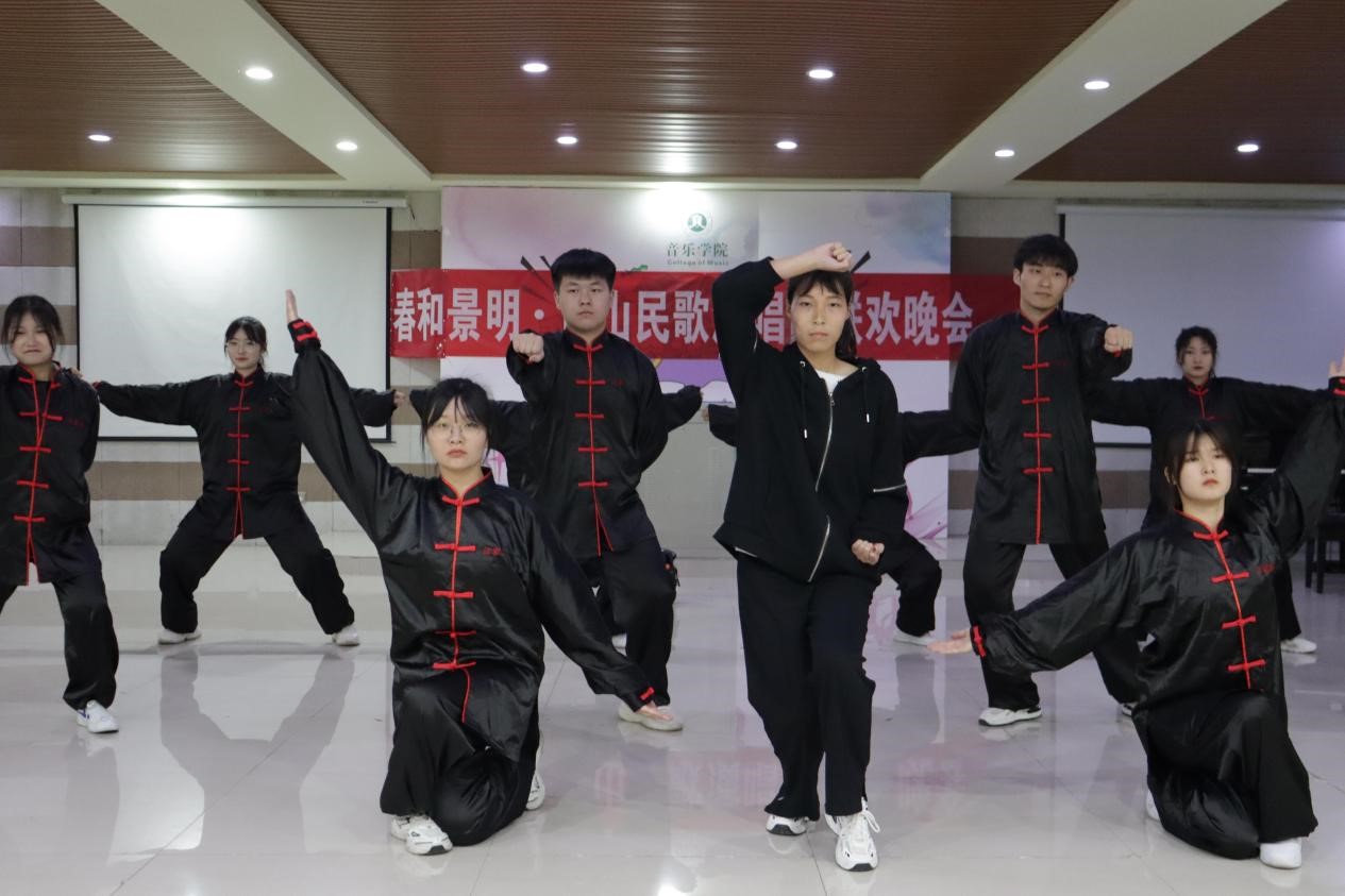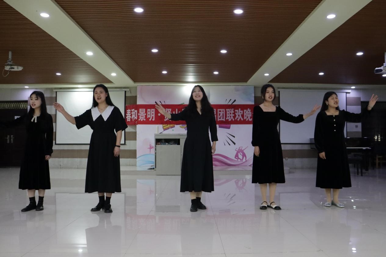 为了提升我院学生艺术实践水平,积极构建文明和谐校园环境,丰富校园文化生活。4月30日晚7点,由音乐学院贤山民歌演唱团牵头、组织,在艺术楼201举办了“春和景明·贤山民歌演唱团联欢晚会"。信阳贤山民歌演唱团、汪家拳协会、纯真吉他社、动漫社以及拉丁舞协会参加了此次晚会的演出。徐甜甜和周影主持了本场晚会。