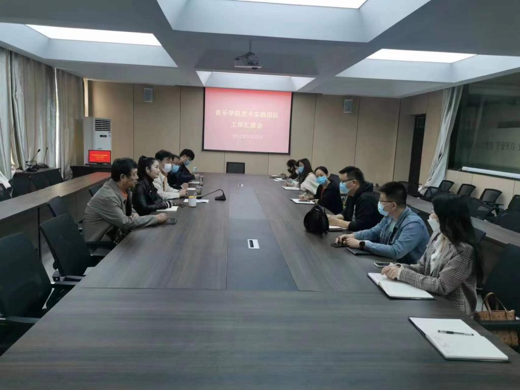 为进一步深化实践育人理念,强化实践教学,推动艺术实践工作,5月12日中午,我院在艺术楼215会议室召开了艺术实践工作汇报会。院长王凯歌、党总支书记郑山峰、教学副院长杨辉,特聘教授扎特以及各艺术实践团队的主要负责人参加了会议。会议由实验中心主任徐沛东主持。
