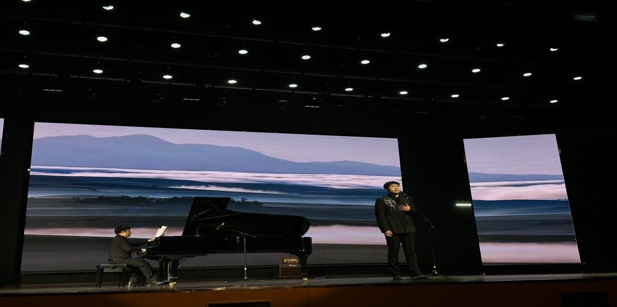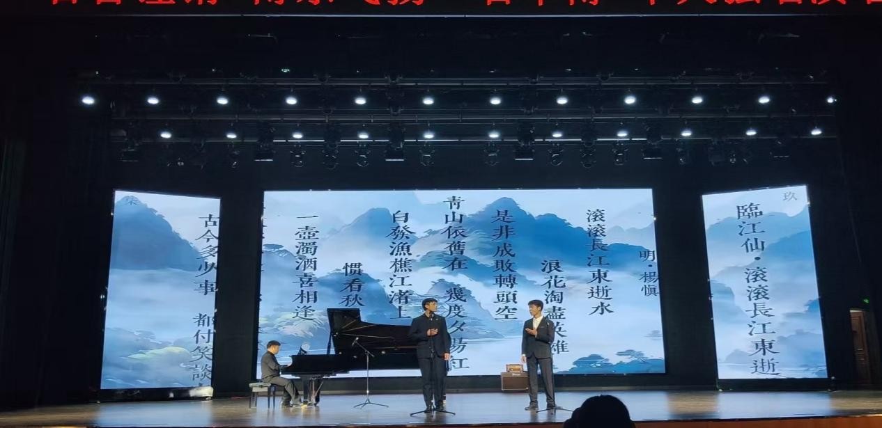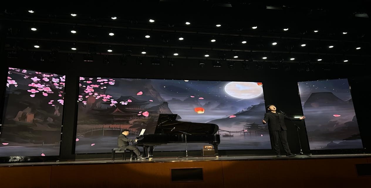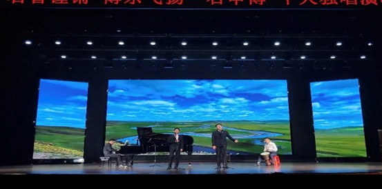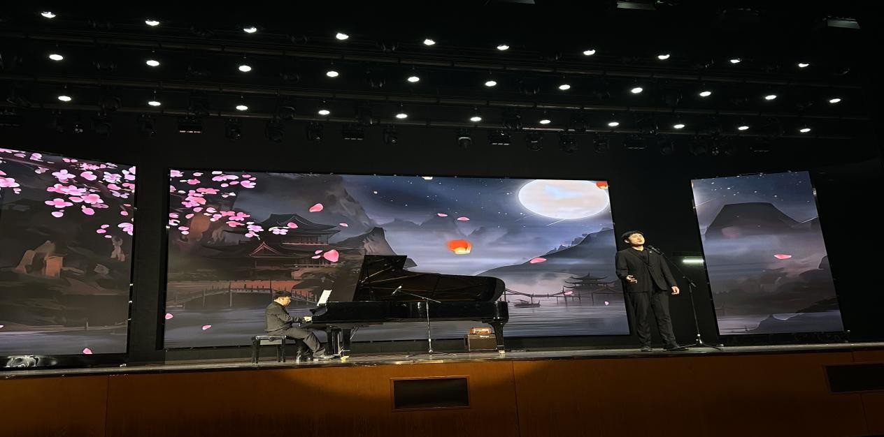 本场音乐会是本学期继梁科硕独唱音乐会后的又一学生独唱音乐会,主唱石申博及助演嘉宾带来了覆盖信阳地方民歌、创作性民歌等不同类型、不同风格的声乐作品共14首,演唱涉及独唱、男声二重唱、男女声二重唱等多种形式,伴奏囊括钢琴、古筝、竹笛、非洲鼓等乐器,整场晚会内容丰富,形式多样,富有层次,生动展现了学生的专业学习成果和艺术实践水平。本次音乐会不仅是石申博个人专业学习的阶段性汇报,也是他学习生涯中重要的艺术实践经历,在舞台上,石申博以个人之赤诚对话音乐历史长河,用歌声传递文化自信,热情表达了优秀传统音乐与现代元素激荡共鸣的深刻理解。