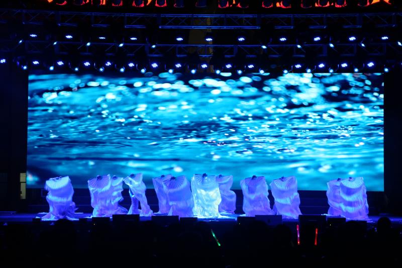 晚会的节目形式多样、内容丰富。《訾水清清》舞蹈由16名同学参与演出。此节目由音乐的高低起伏及扇子对水流的描绘,表现出了訾水的平静与高潮,彰显出信阳浉河文化。节目结束就得到了观众们的强烈认可。
