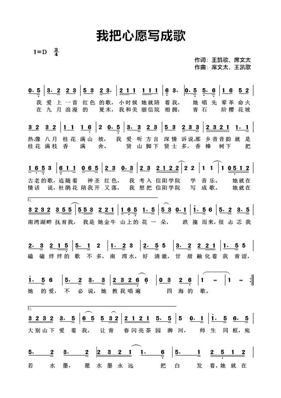 原创歌曲——我把心愿写成歌(王凯歌、席文太作词 席文太、王凯歌作曲)