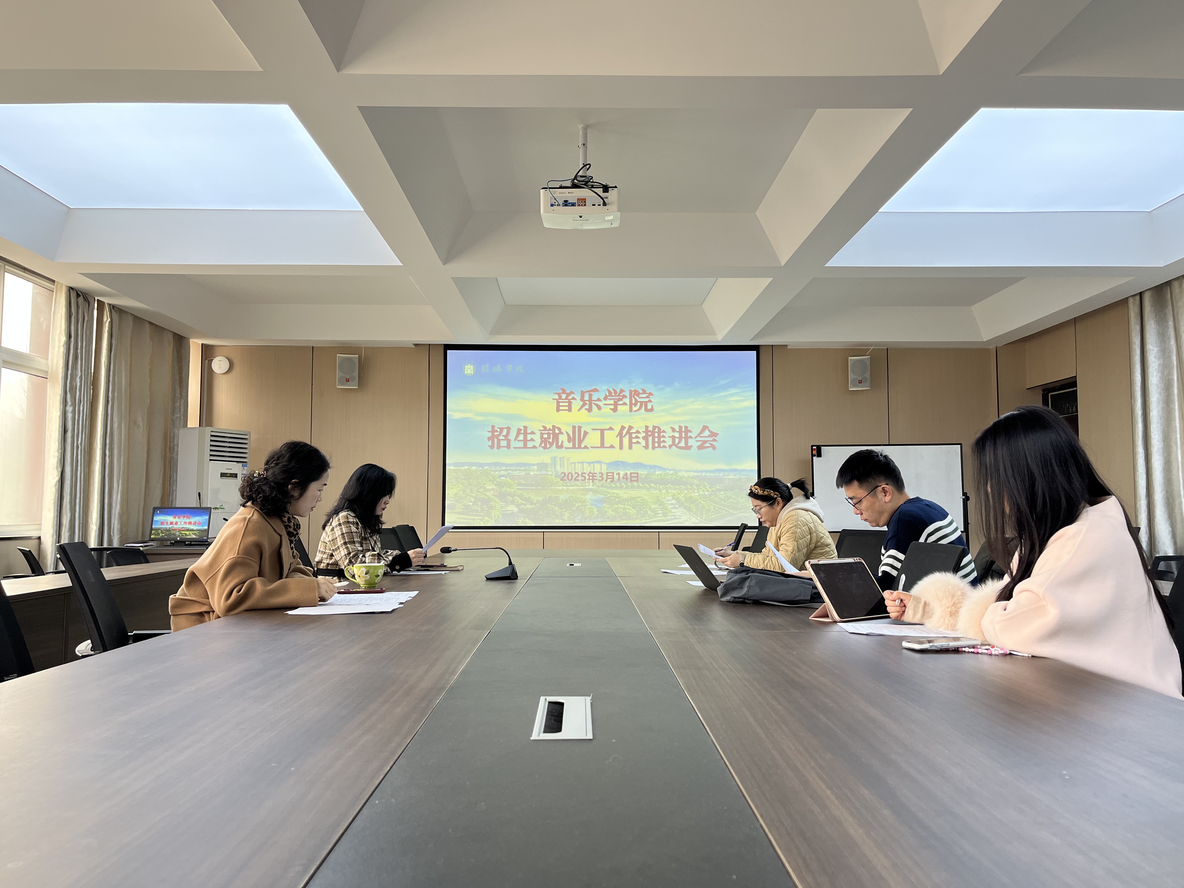 为进一步全面做好2025年招生宣传工作,适应当前面临的招生新形势、新任务,3月24日,音乐学院召开了2025年招生宣传工作推进会。党总支书记郝昊、副院长杨辉及班子成员、各教研室主任及招生直播有关负责教师参加了会议。杨辉主持了会议。