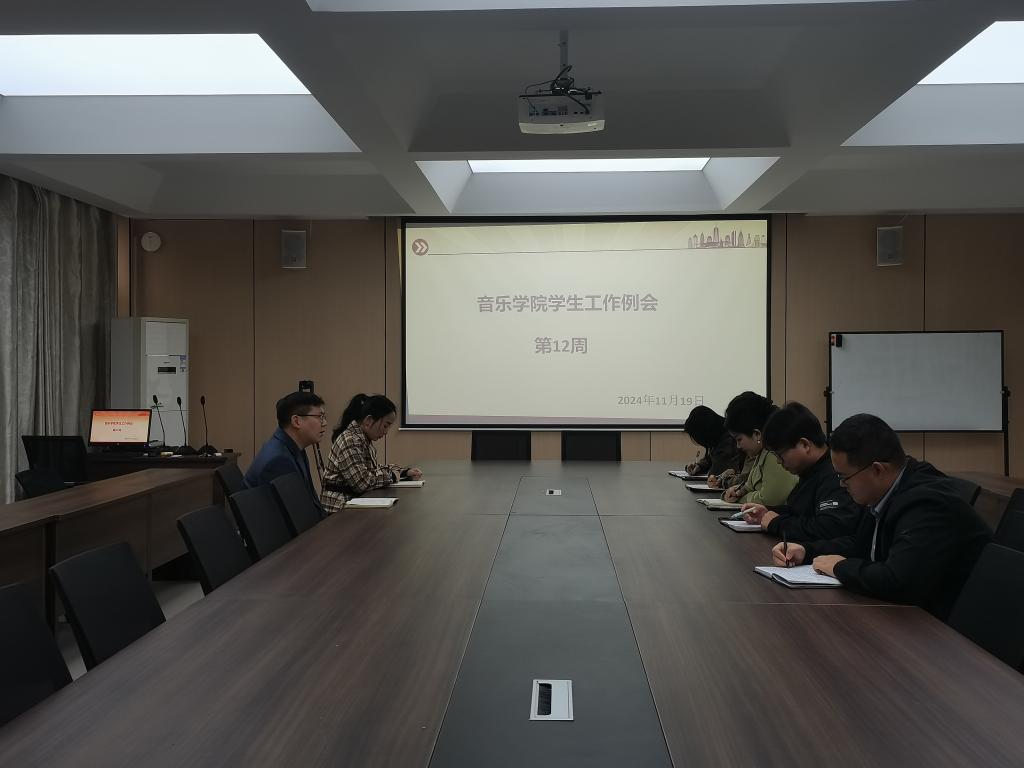 为切实提升学生工作队伍素质,增强学生管理工作实效,全面贯彻落实学校近期安全会议精神,近日,音乐学院在艺术楼215会议室召开了第十二周学生工作例会暨辅导员素质能力大赛赛前动员会。党总支书记郝昊、学工秘书李平及全体辅导员参加了会议。