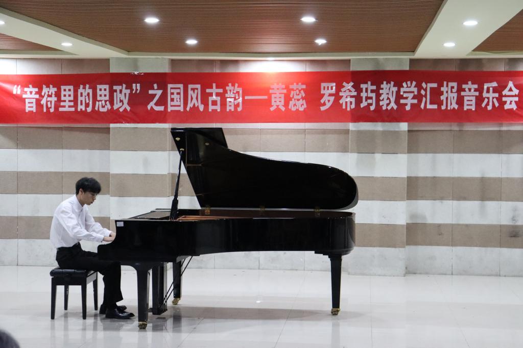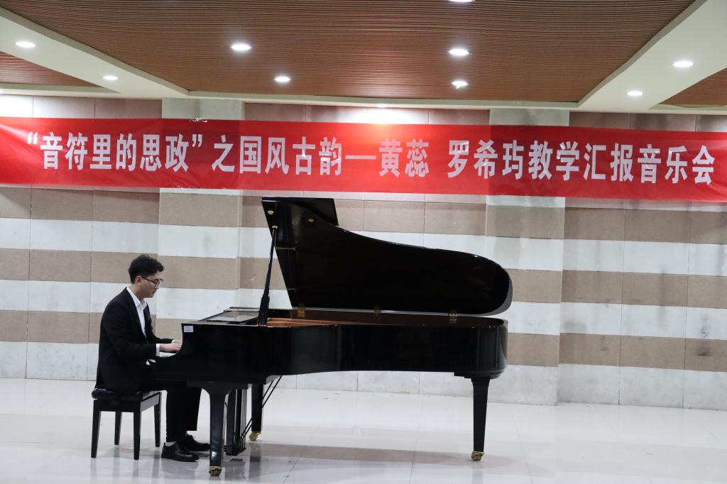 4月11日晚7:00,由音乐学院教师黄蕊、罗希玙指导的,“音符里的思政”系列之“国风古韵”教学汇报音乐会在艺术楼201成功举行。学院钢琴与器乐教研室主任胡世红及教师、学生代表一起观看了音乐会。