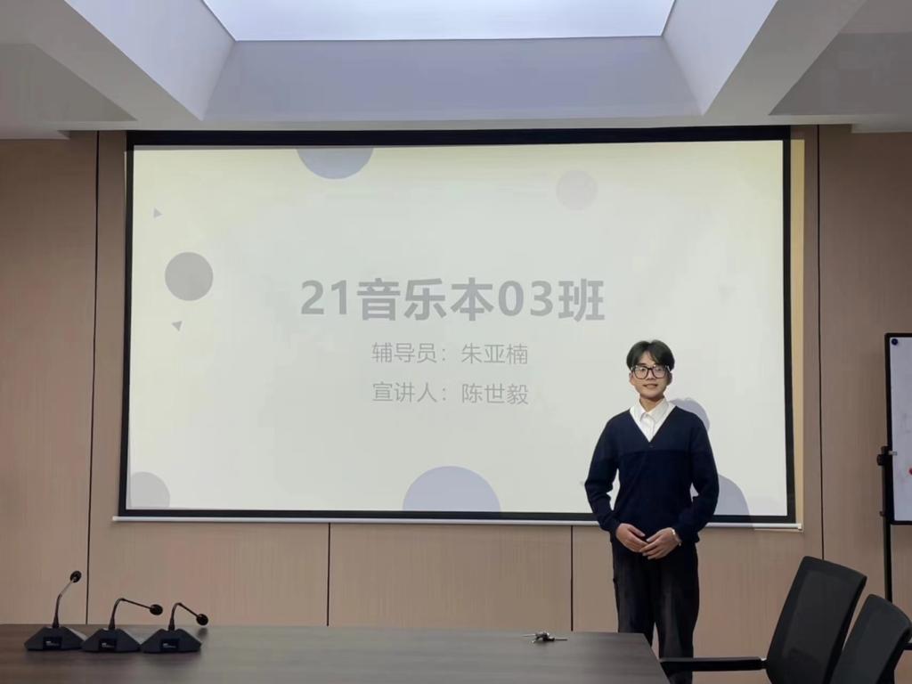 学风建设先进班集体:2021级音乐学本科3班代表陈世毅和2022级音乐学本科6班从班级概况、班级建设、所获荣誉、班级优秀个人等方面进行了宣讲。勉励所有同学要不断提升自己。