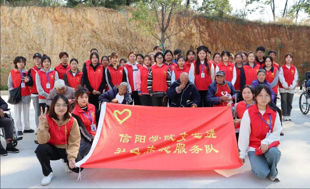为了发扬中华民族的传统美德,弘扬尊老爱老敬老的精神,信阳学院音乐学院青年志愿者于2023年10月23日在南湾湖养老院开展了“以我青春暖夕阳,以爱为源洒阳光”文艺汇演活动。