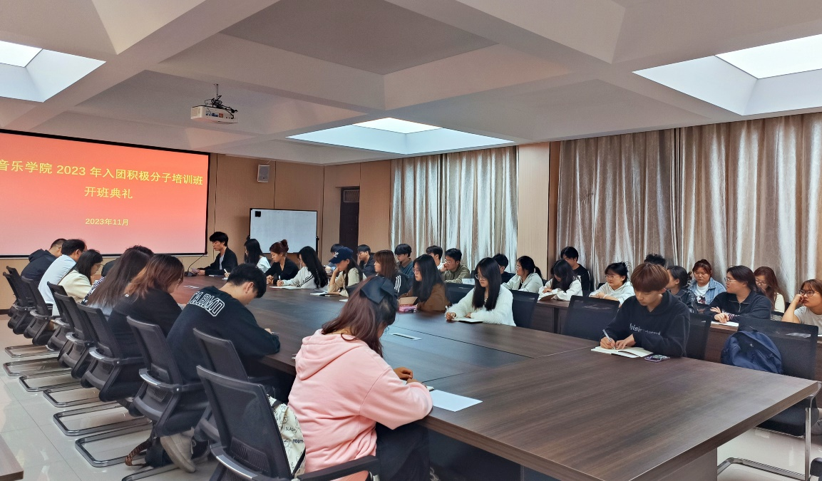 为了进一步加强学院共青团的队伍建设,增强团组织的凝聚力,壮大团组织的力量,充分发挥团组织在青年群体中的影响力,11月3日中午,在艺术楼215会议室,音乐学院团总支举行了2023年入团积极分子培训班开班仪式。校团委书记,音乐学院党总支书记郑山峰,音乐学院团总支书记闫贵以及31名入团积极分子学员参加开班仪式。会议由闫贵主持。