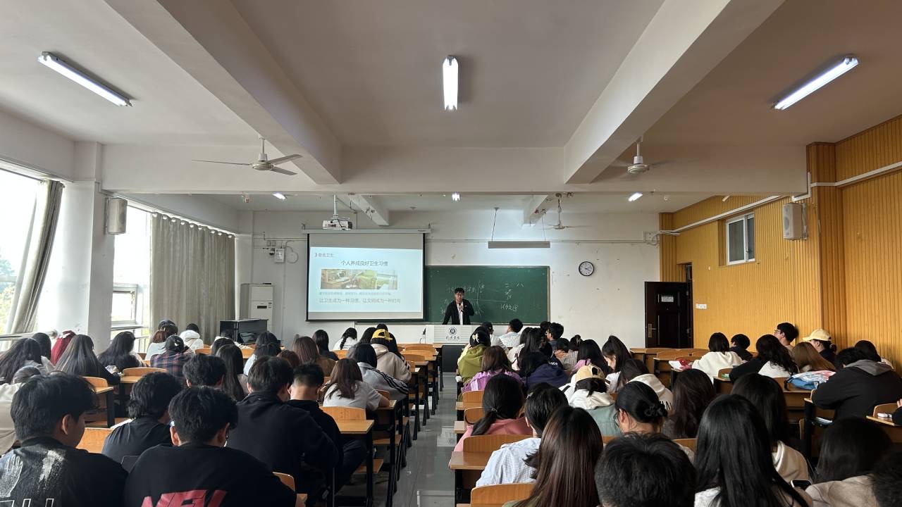 为了帮助新生尽早适应大学生活,实现角色转换,确立人生目标。我院于2023年9月26日在艺术楼407教室开展新生入学适应性教育讲座,由辅导员全成老师担任主讲,全体2023级新生参加。