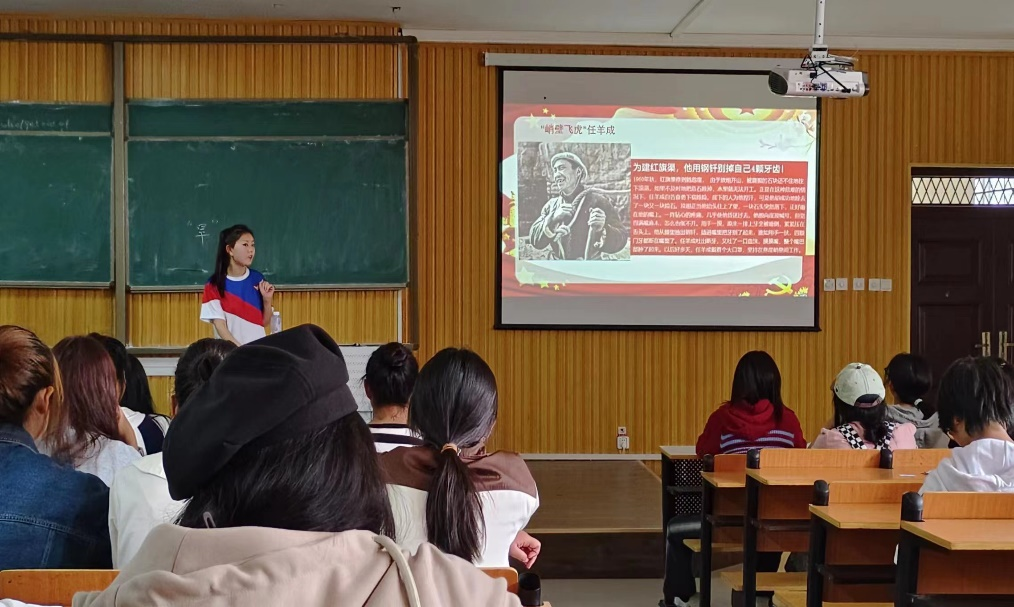9月28日晚,在艺术楼101教师,宣讲团成员陈岩为音乐学院23级的学生宣讲红旗渠精神,讲述十万开山者,历时十年,绝壁穿石,挖渠千里,创造人间奇迹的历史。使同学们深刻了解红旗渠修建前生活的困苦和修建红旗渠时的艰辛。