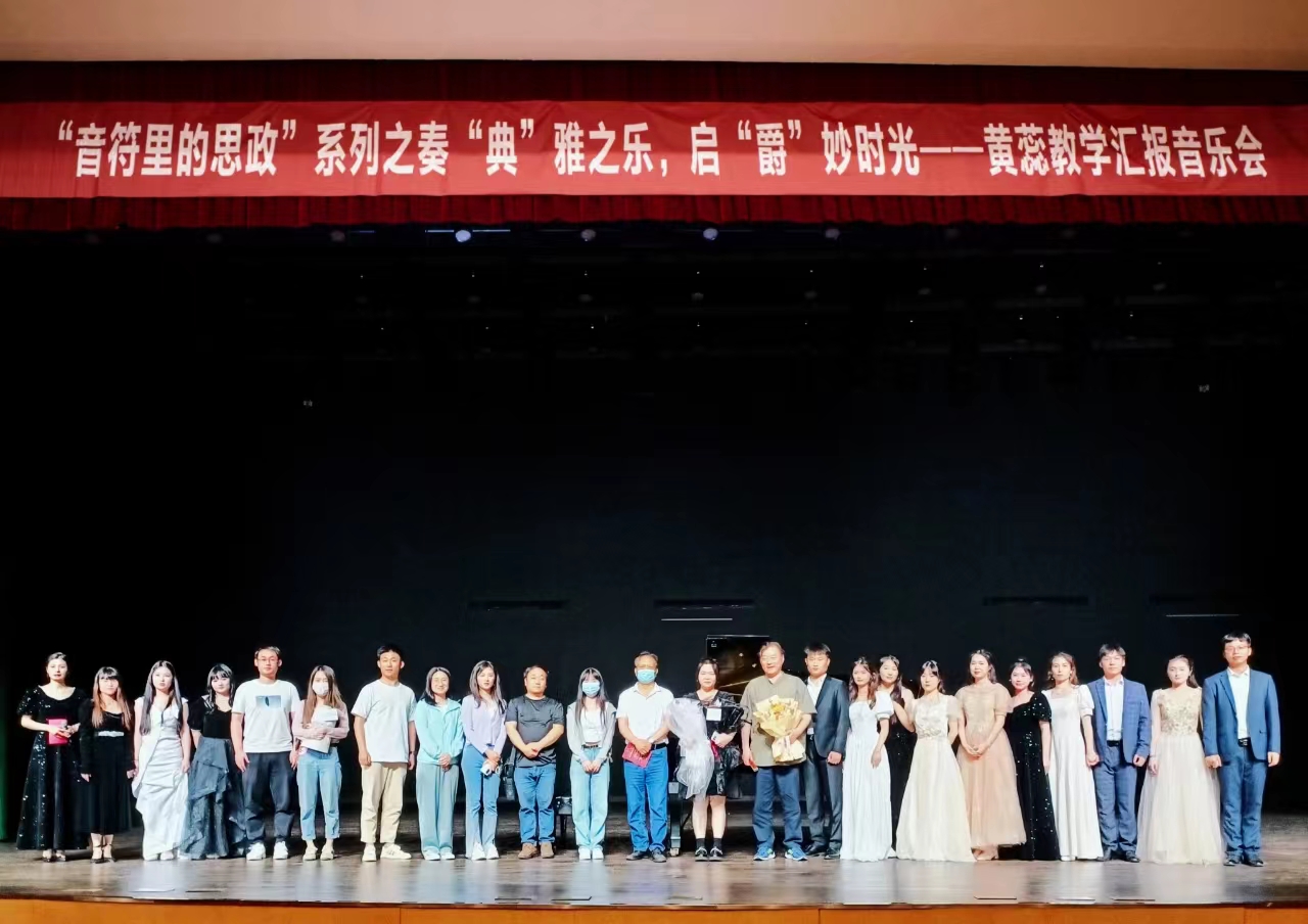 这是一场艺术的盛宴,更是一场"音符里的思政"的盛会。音乐会在全体演奏着鞠躬谢幕中划上完美句号。王凯歌院长和胡世红主任等领导、老师上台与师生热情交流并合影留念。晚会后,院长王凯歌院长对本场音乐会给予了充分的肯定和赞许。他表示,这是一场专业性强、配合想象力丰富、有组织有凝聚力的音乐会。黄蕊老师对待教学认真负责,对待工作敬业热情,本次音乐会的圆满成功在于黄蕊老师的辛勤指导和同学们的倾心配合。希望老师们和同学们可以继续保持这种优秀的品质,积极展现自己的技能,不断提升自身专业能力,继续发扬立德树人理念。