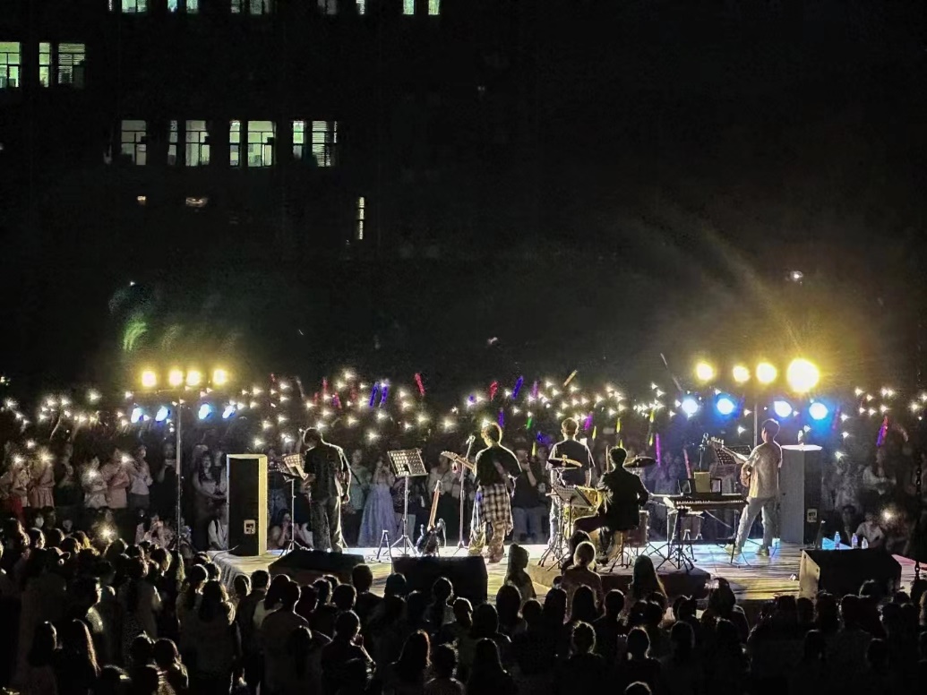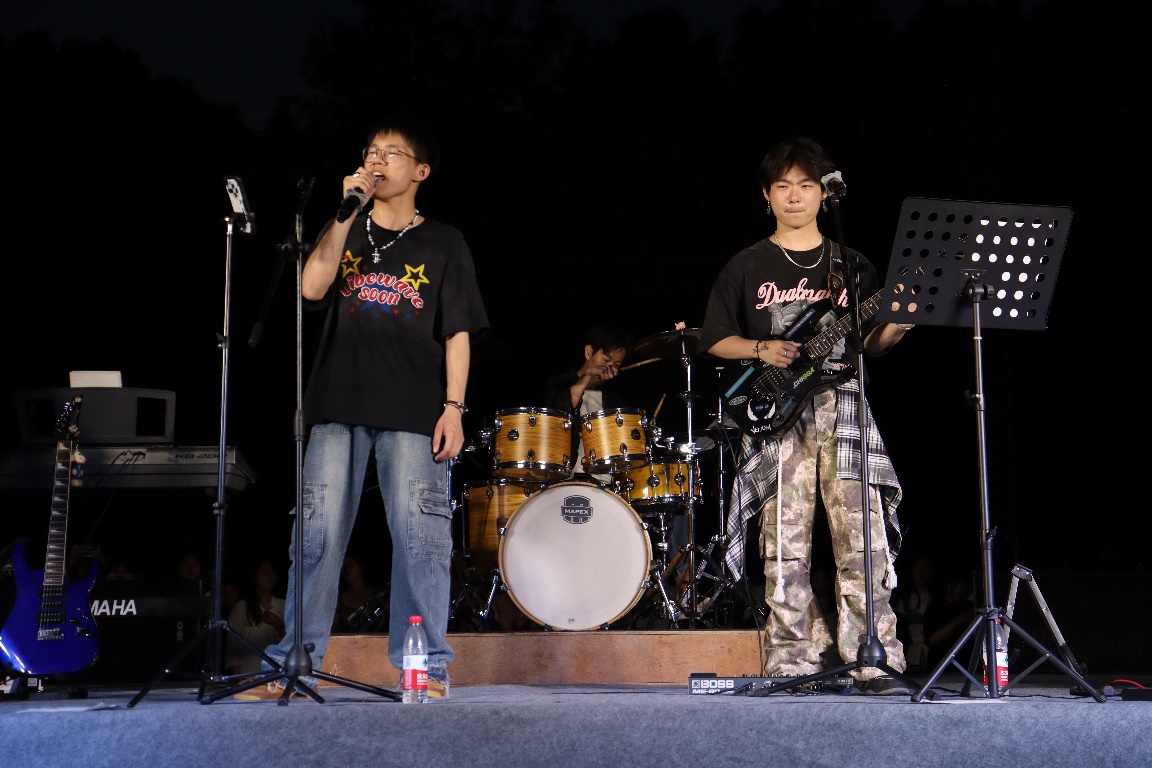 随着一首《四相》的响起,同学们在操场上就地围坐,简单宣布注意事项后,音乐节于晚上7点准时开场。在被荧光棒和闪光灯簇拥的操场中央,一首首动听的歌曲萦绕耳旁,无论是浪漫动人的《不归女孩》,还是律动炸场的《离开地球表面》《阳光宅男》,以及一首相信光的《奇迹再现》,亦或是热血有力的摇滚《向阳花》和极具风格的《不》,都收获了场下观众的呐喊欢呼和真诚掌声。
